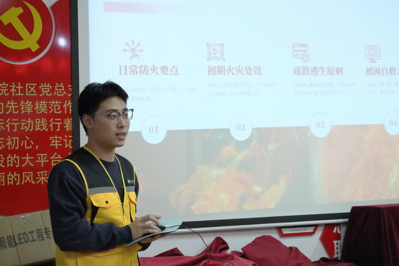 11 月是全国消防安全月,消防安全知识的普及与传播至关重要,防火意识不容松懈!2025年11月6日下午,我院“行走的安全帽”志愿服务队走进工运社区进行消防安全科普宣讲活动,工运社区的居民积极参与。本次活动旨在普及消防安全知识,提升居民的火灾防范意识和自救能力。为了让知识传递更接地气、让安全技能真正落地,志愿者团队精心设计了 “安全启蒙、隐患侦查、逃生秘籍” 三大核心环节,用居民听得懂的方式,将消防安全的种子播撒进每一户家庭。