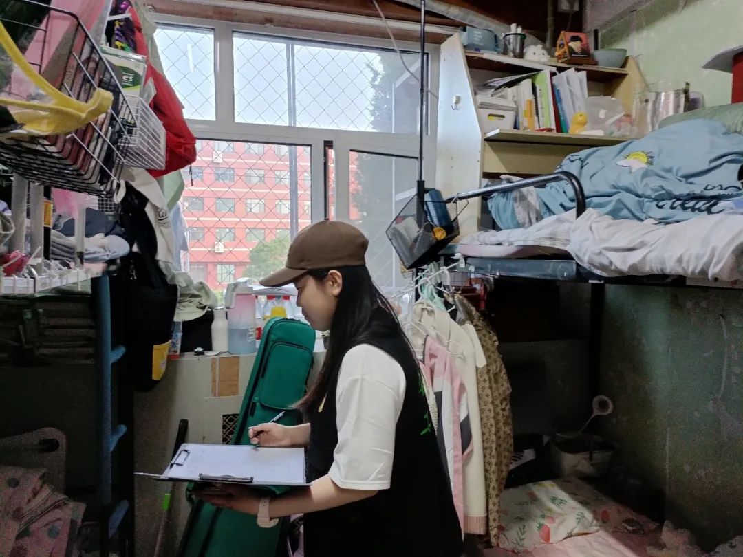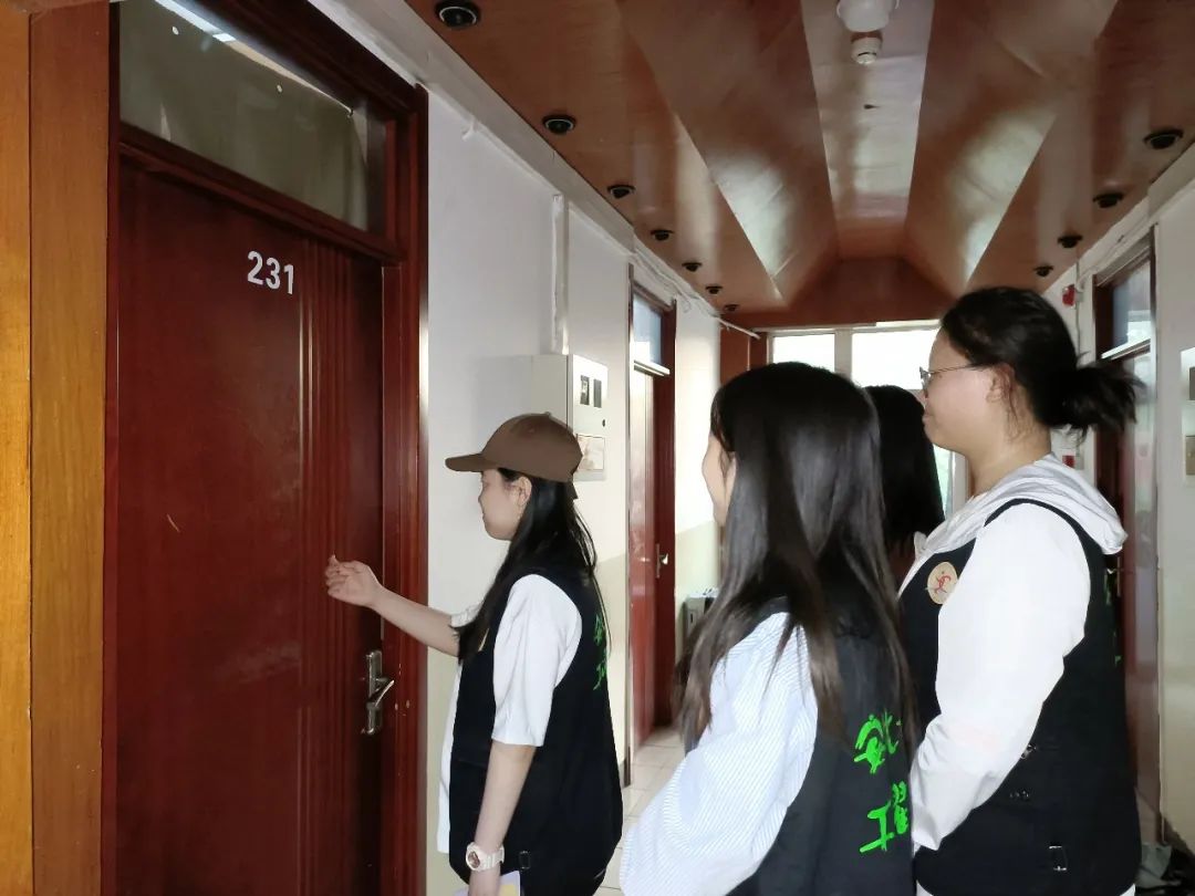 19:00,志愿者对学院各个宿舍存在的安全隐患进行排查和总结。志愿者们分成两个小组,认真检查并记录了学院每个宿舍的安全情况。对于个别存在安全隐患的宿舍,志愿者都进行细致地记录并加以提醒。