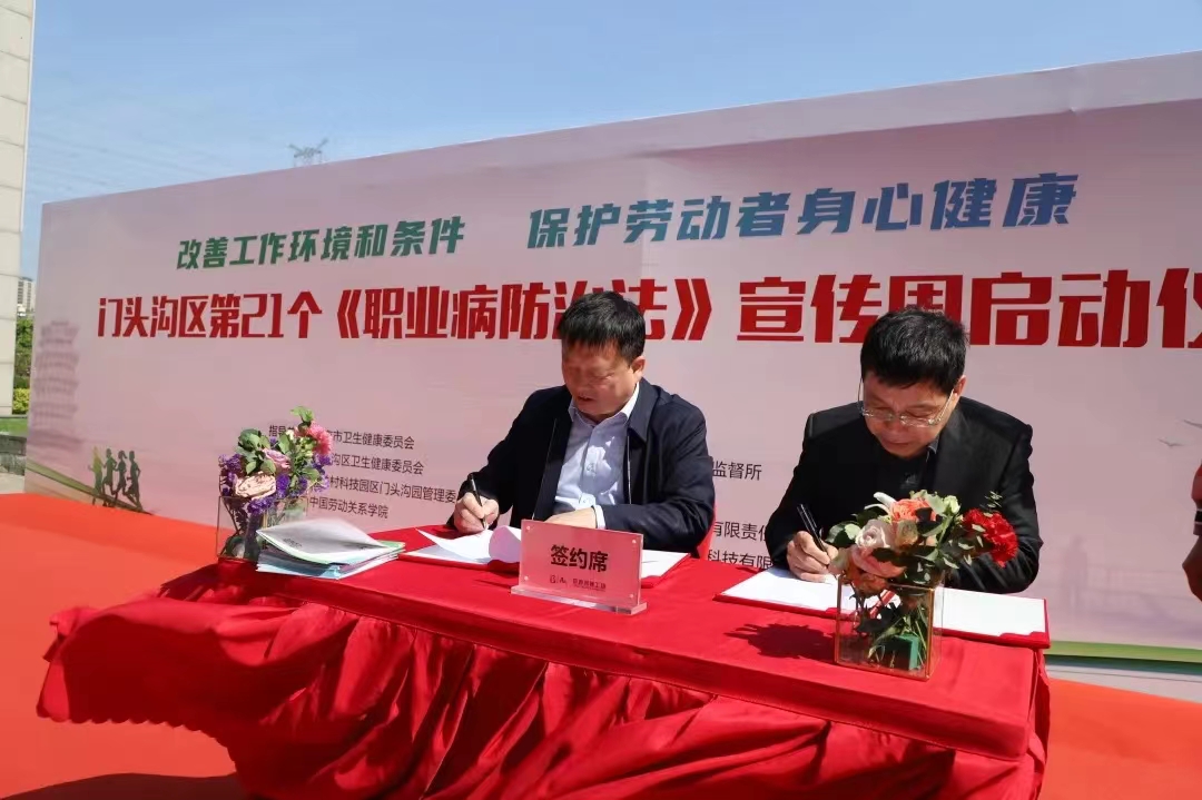 4月24日,门头沟区第21个《职业病防治法》宣传周启动仪式在石龙阳光大厦举行。北京市卫生健康委职业健康处处长李玉祥、门头沟区卫生健康委主任亓建军、中国劳动关系学院安全工程学院院长赵秋生、门头沟区人力资源与社会保障局副局长孙桂珍、门头沟区民政局一级调研员李淑英、门头沟区医疗保障局副局长周军、中关村门头沟园党工委副书记侯晓倩、各尘肺康复站负责人以及门头沟区企业代表出席本次活动。