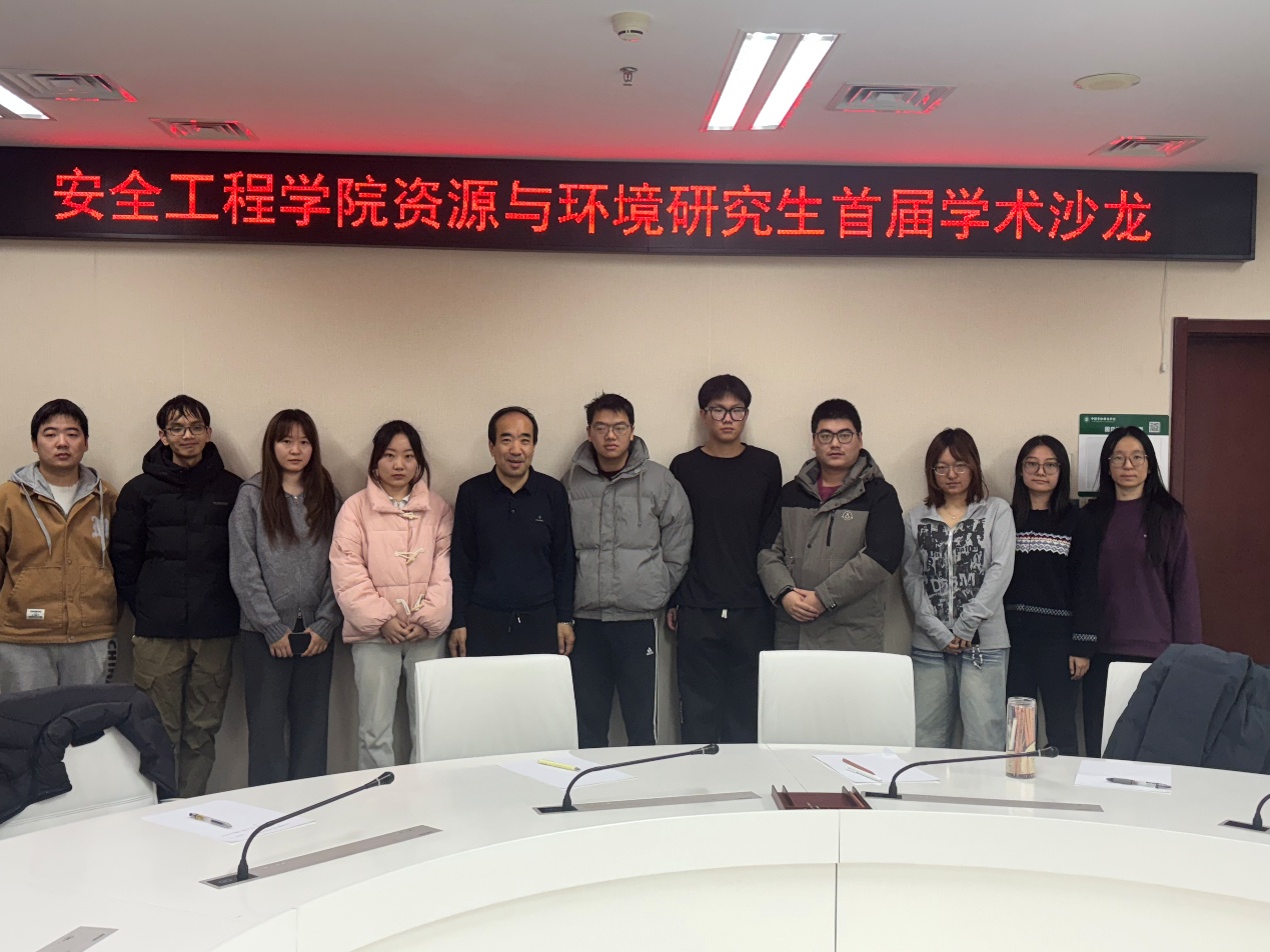 2025年12月12日上午10时,中国劳动关系学院安全工程学院资源与环境专业首届研究生学术沙龙在致远楼409会议室成功举办。本次活动旨在打造常态化、高质量的学术交流平台,激发科研活力,夯实研究基础。安全工程学院副院长任国友教授与2025级全体研究生共同参加了本次活动。