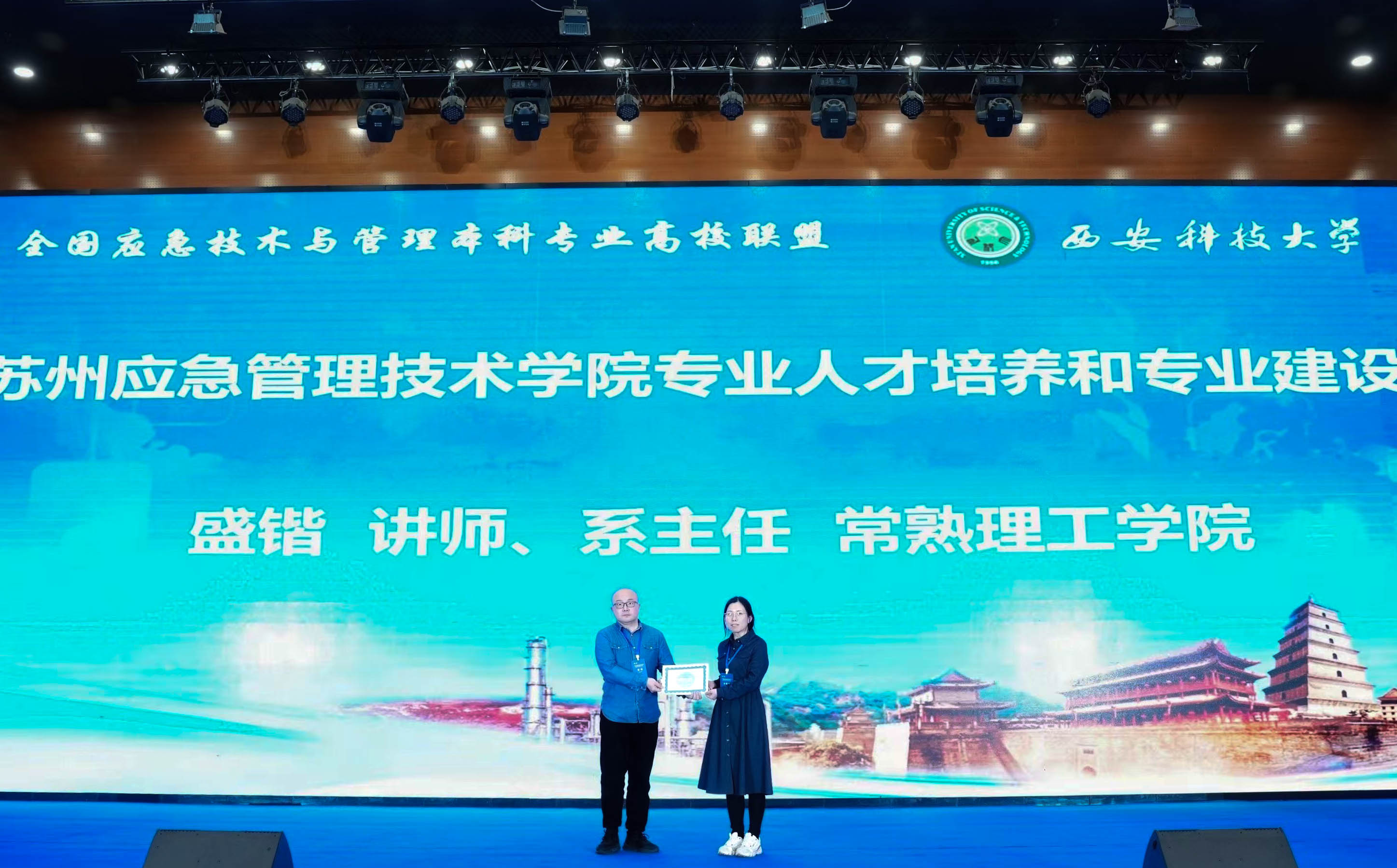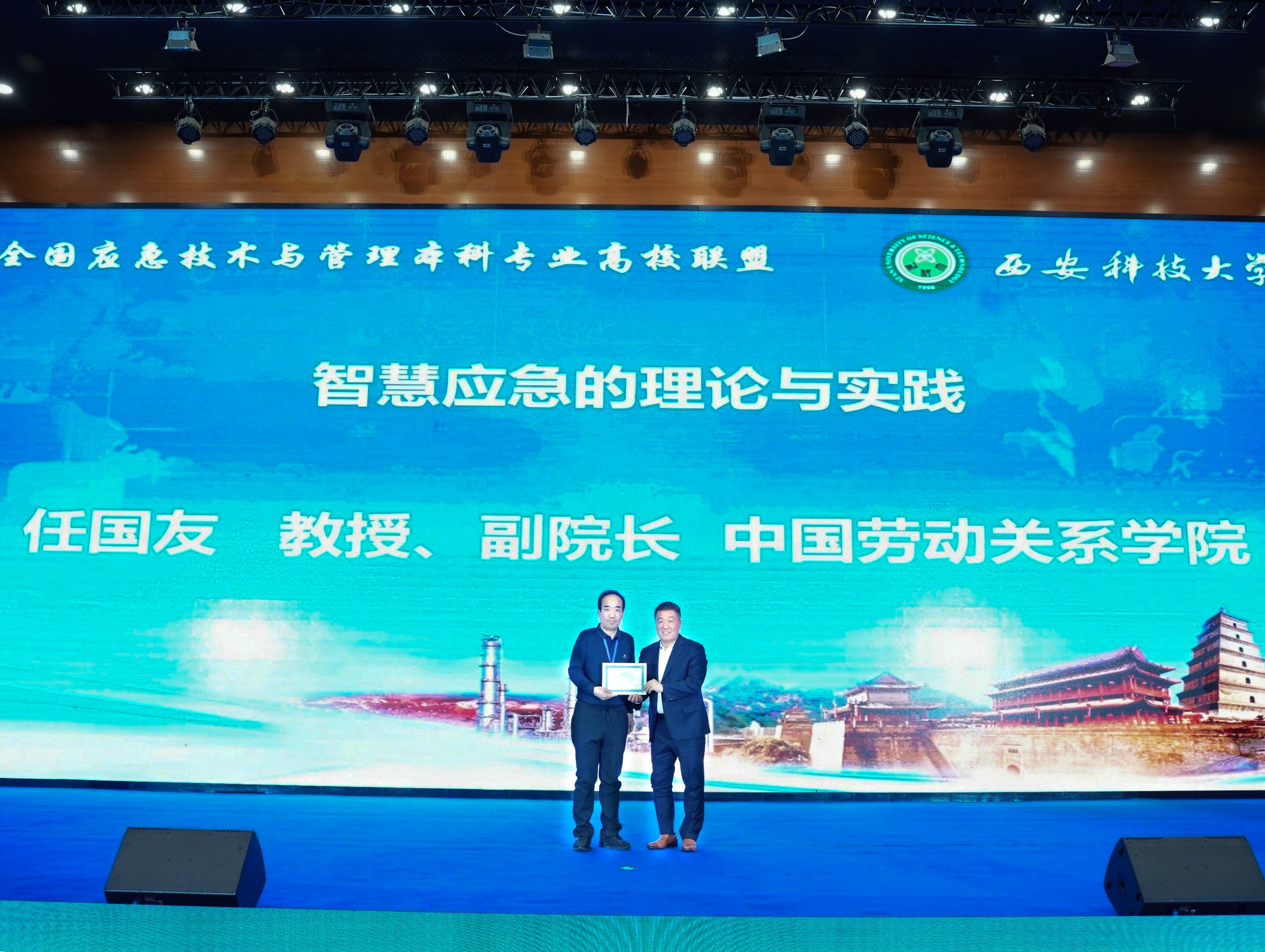 在全国应急技术与管理本科专业高校联盟第四届年会暨“崇劳杯”第七届安全与应急高端论坛上,赵秋生院长向西安科技大学颁发了承办纪念牌,向吉林建筑大学颁发了全国应急技术与管理本科专业高校联盟第五届年会暨“崇劳杯”第八届安全与应急高端论坛承办牌,还和教育部安全科学与工程类专业教学指导委员会秘书长徐景德教授向各类竞赛获奖单位代表颁发了获奖证书。我院安红昌教授做了联盟工作报告,任国友教授做了《智慧应急的理论与实践》的报告,安红昌教授和许素睿副教授担任了论坛主持人。