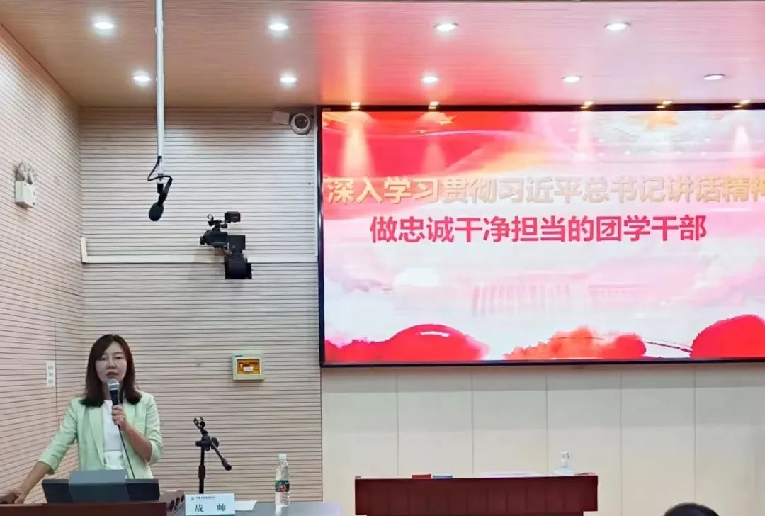 结业仪式在庄重嘹亮的团歌中正式开始。学院党总支书记战帅为优秀学员颁发证书,并以《深入学习贯彻习近平总书记讲话精神——做忠诚干净担当的团学干部》为题做主题教育专题党课。她首先带领大家一起学习回顾了习近平总书记在中央党校(国家行政学院)中青年干部培训班开班式上发表的重要讲话精神,并着重围绕兴勤于学习之风,走自我完善之路;兴敢于担当之风,走甘于奉献之路;兴历练本领之风,走专业人才之路;兴开拓进取之风,走创新发展之路;兴修炼品行之风,走永葆纯洁之路五个方面与大家共同探讨了团学干部的作风养成途径。最后,战书记结合总书记讲话精神,从提升个体、群体、组织的活力,讲述了团学干部的健康成长之路。她勉励全体学生骨干,要严格要求自己,做好表率,做新时代合格的团学骨干。