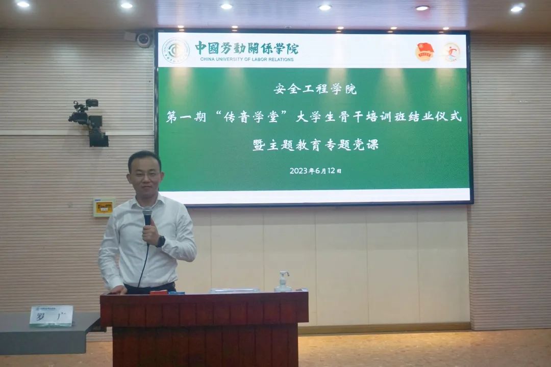 6月12日晚,学院“传音学堂”第一期大学生骨干培训班结业仪式在涿州校区阶八教室举行。学院党总支书记战帅参加结业仪式并做主题教育专题党课。学院辅导员罗广、“传音学堂”第一期大学生骨干培训班全体学员以及学院第17、18届团总支学生会全体成员共同参加。学院辅导员罗广主持仪式。