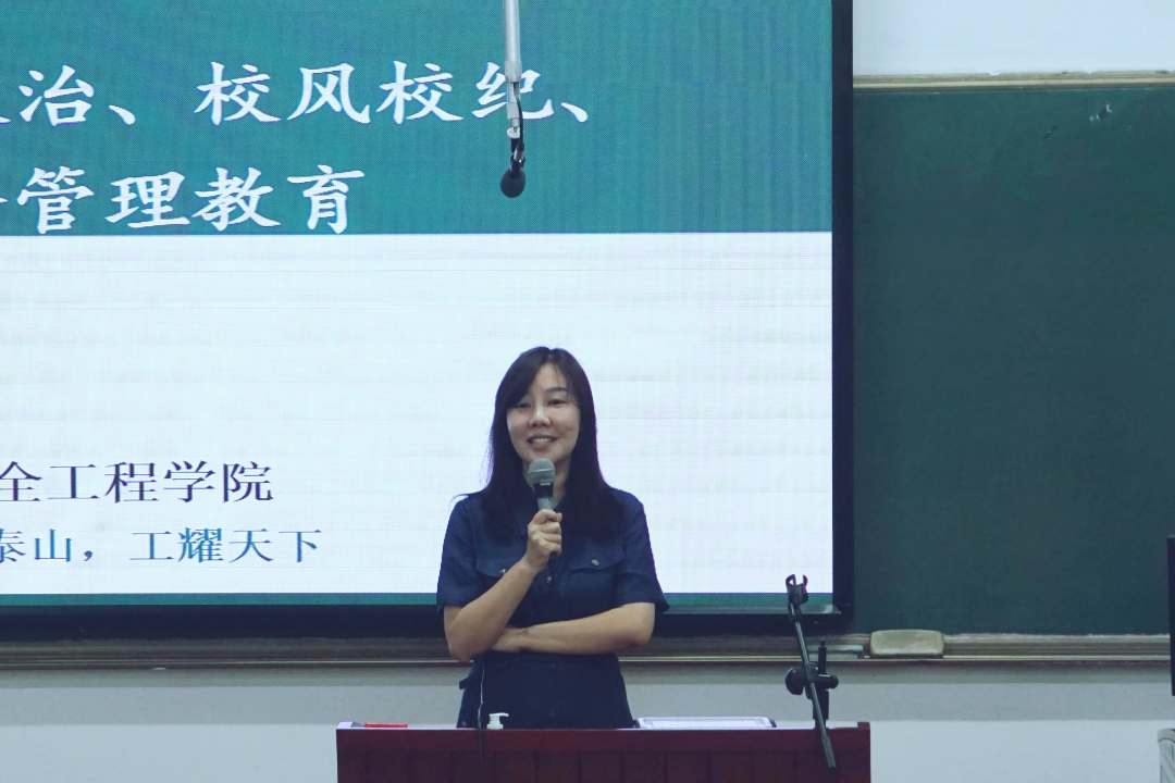 学院安全工程系副主任许素睿、应急技术管理系副主任王起全、职业卫生系主任徐桂芹通过讲解各专业培养方案,帮助新生读懂专业价值,打破潜在认知,更好吃透所学专业、课程体系、专业前沿及就业去向等,培养学生的学业志趣,激发同学们学安工、爱安工、事安工的热情。
