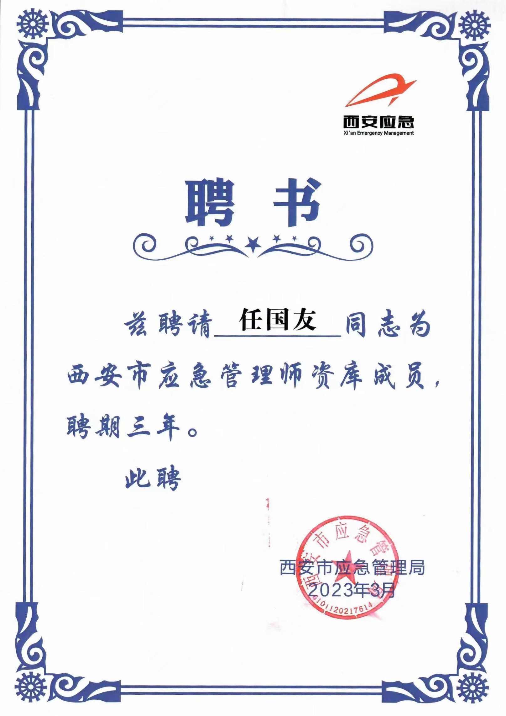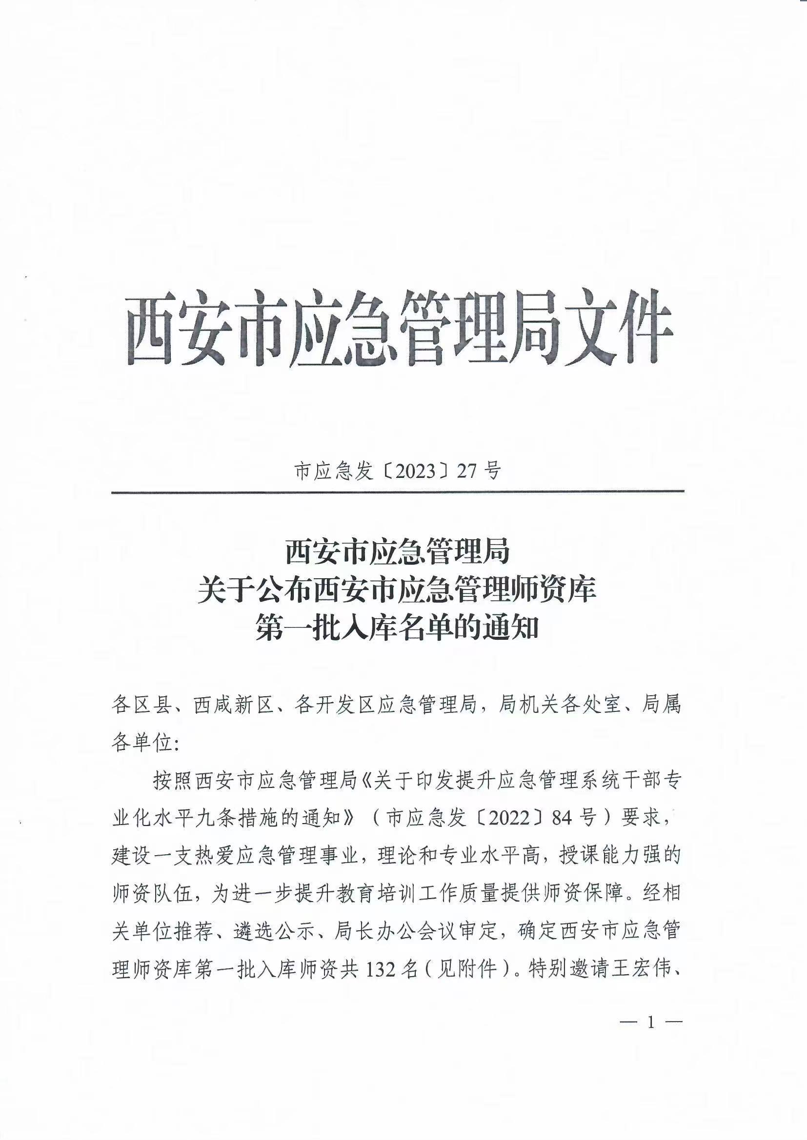 日前,西安市应急管理局公布西安市应急管理师资库第一批入库名单,我院副院长任国友教授获聘,聘期3年。