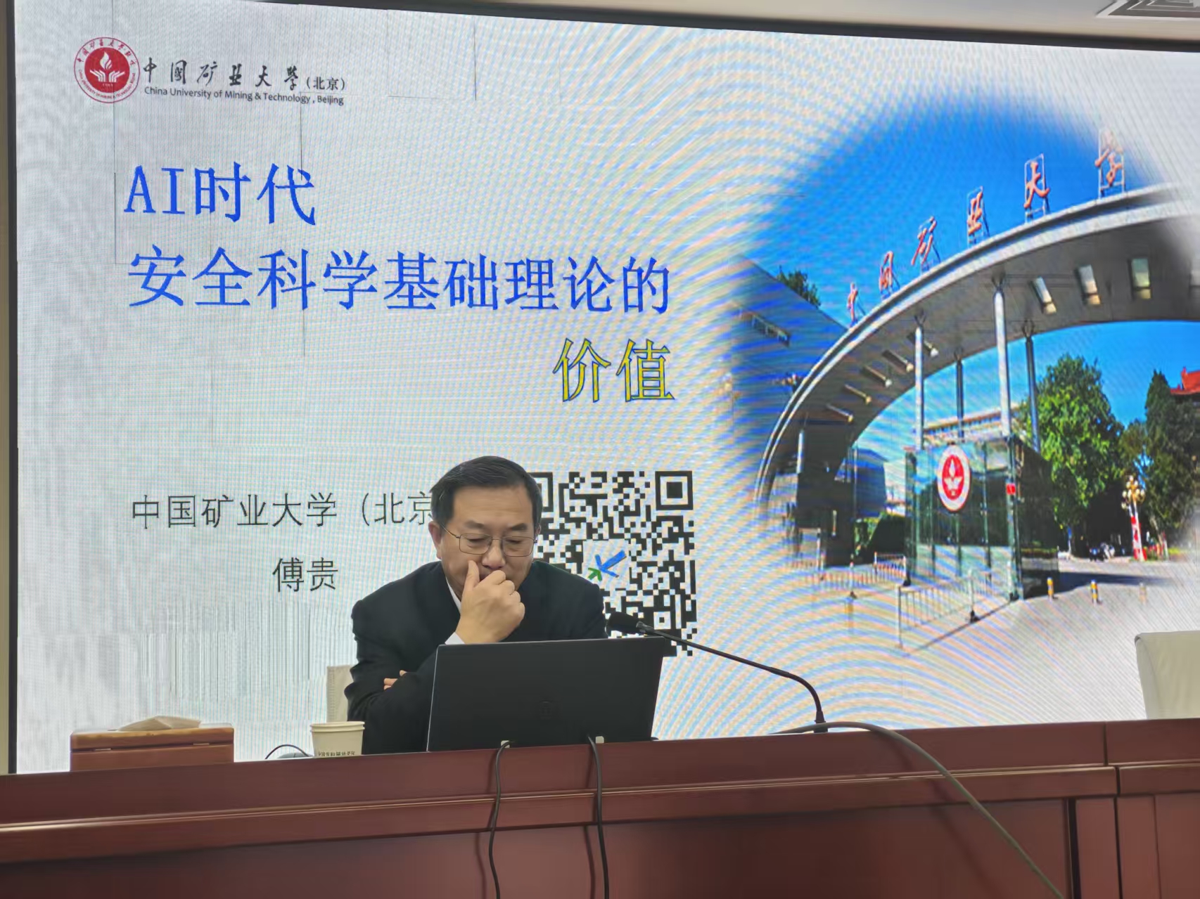 2025年12月12日,安全工程学院“智慧安全文化大讲堂”(第4讲)在北京校区致远楼509报告厅举行。本期讲座特邀中国矿业大学(北京)二级教授、博士生导师、安全管理研究中心主任傅贵教授,以“AI时代安全科学基础理论的价值”为主题,深入探讨人工智能与安全科学融合所面临的挑战、理论根基及实践路径。