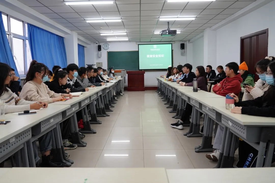 联合检查小组首先走进寝室,针对宿舍中发现的各种安全问题进行及时纠正,并向寝室同学普及安全知识和垃圾分类知识;随后,双方在一教407围绕两院安全,针对大学生在实际生活中的安全问题进行座谈,交流工作经验心得。我院学生会主席赵崇儒结合专业知识讲解如何合理用电、预防火灾以及防烫伤等安全知识;生活权益部副部长吴灏讲解了防触电和防盗防诈骗知识,并提醒大家要提高防盗防诈骗的意识。
