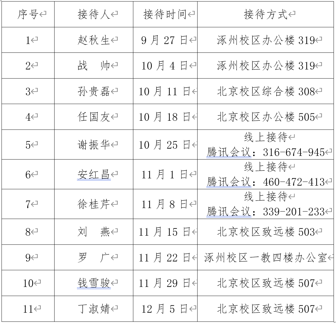 (一)线下线上会议室受理学生来访,具体方式请见上表。