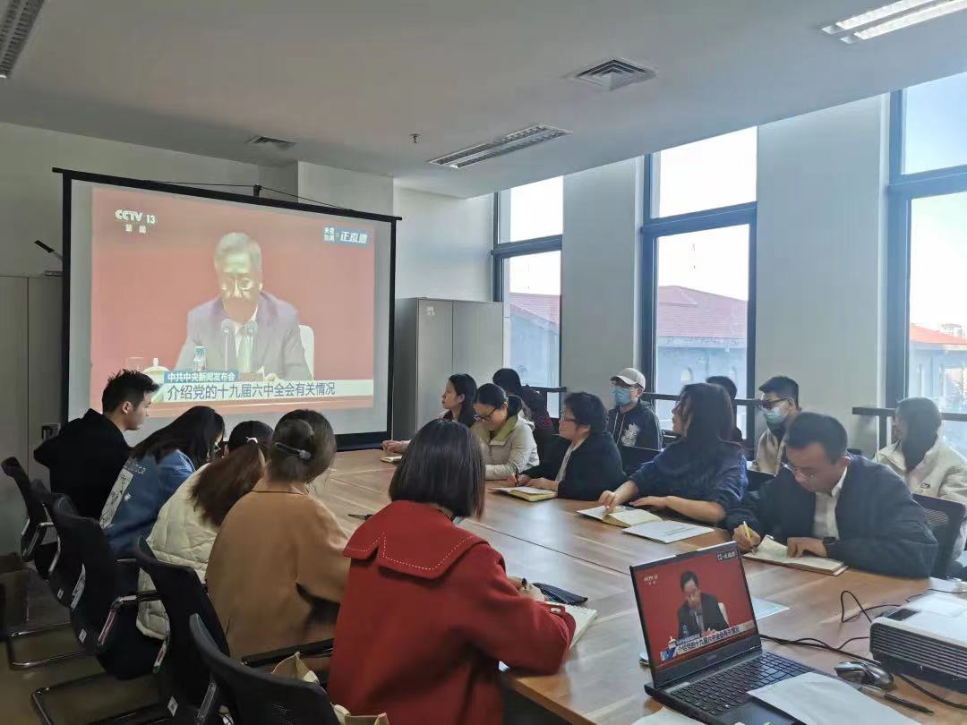 11月12日上午,我支部于致远楼506会议室开展了十九届六中全会精神学习专题党课和学习讨论活动,学生党员、发展对象与学院老师们共同观看了关于党的十九届六中全会的新闻发布会,全会审议通过了《中共中央关于党的百年奋斗重大成就和历史经验的决议》,全面总结了党的百年重大成就和历史经验,此次集中学习讨论让与会学生深刻领会了十九届六中全会的精神要义,收获满满。
