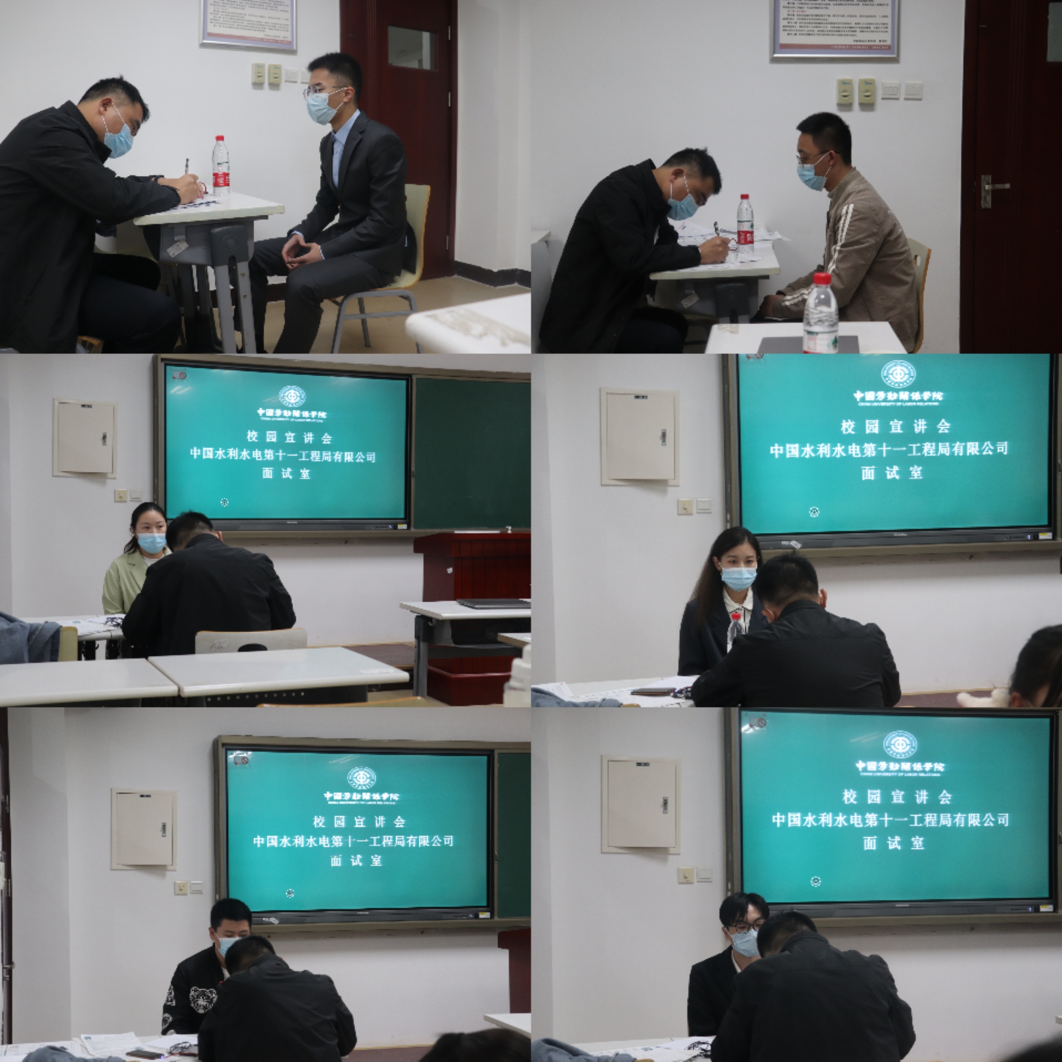 10月11日15时,我院联合学校就业指导中心邀请中国水利水电第十一工程局有限公司与中铁建设集团有限公司,在北京校区闻道楼303教室开展2022届毕业生校园宣讲会。学院党总支书记战帅、学校就业创业指导中心杨元君老师接待相关人员。来自各学院相关毕业生百余人参加了此次招聘宣讲。