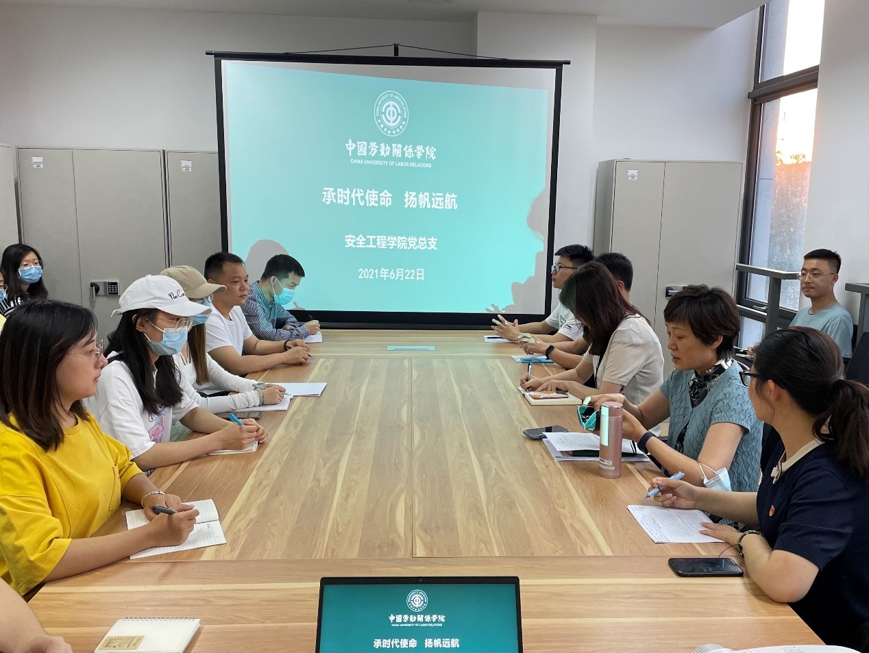 战帅书记在总结讲话中希望毕业生党员能起到良好的示范作用,文明离校,投身工作岗位,爱岗敬业,弘扬安工精神。她还勉励学生党员以良好的精神风貌和优异的成绩,迎接党的百年华诞。