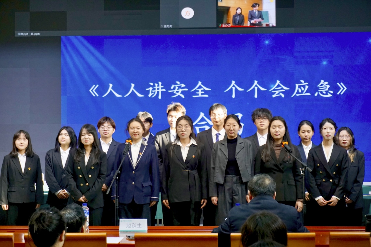 我校参赛队伍带来的合唱《人人讲安全 个个会应急》为比赛拉开序幕。本次大赛采用线上线下相结合的答题形式,竞赛题目紧扣安全生产、公共卫生、应急救援、防灾减灾等核心领域,题型丰富多样,涵盖法律法规、实际操作、案例分析等,全面且深入地考查了选手们的知识储备与实践应用能力。比赛过程中,选手们斗志昂扬、团结协作,展现出扎实的专业功底与出色的应变能力。经过基础题、抢答题、风险题、分析题四轮紧张激烈比拼,最终我校代表队荣获二等奖1项、三等奖1项、优秀奖2项,丁淑婧获评优秀指导教师。