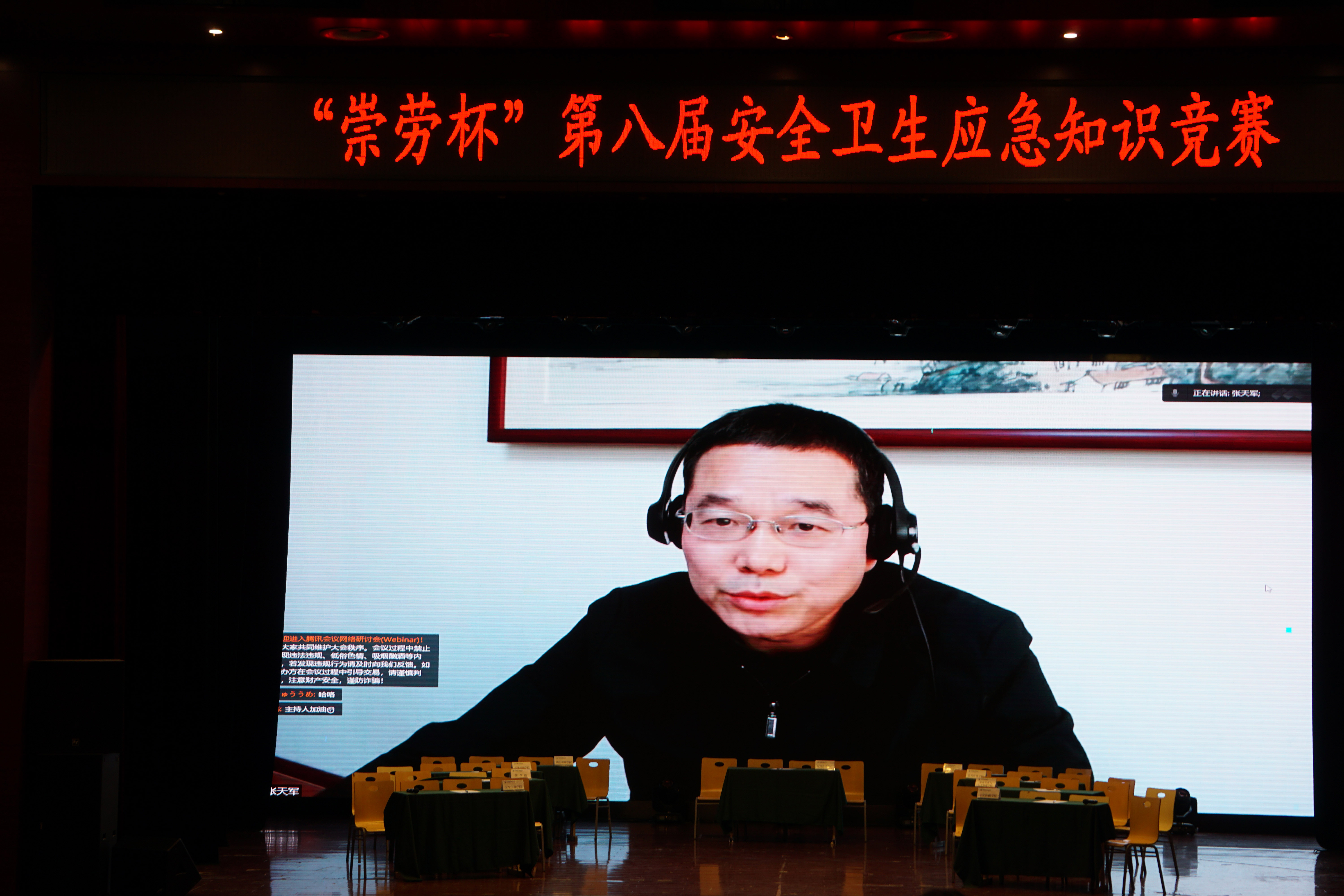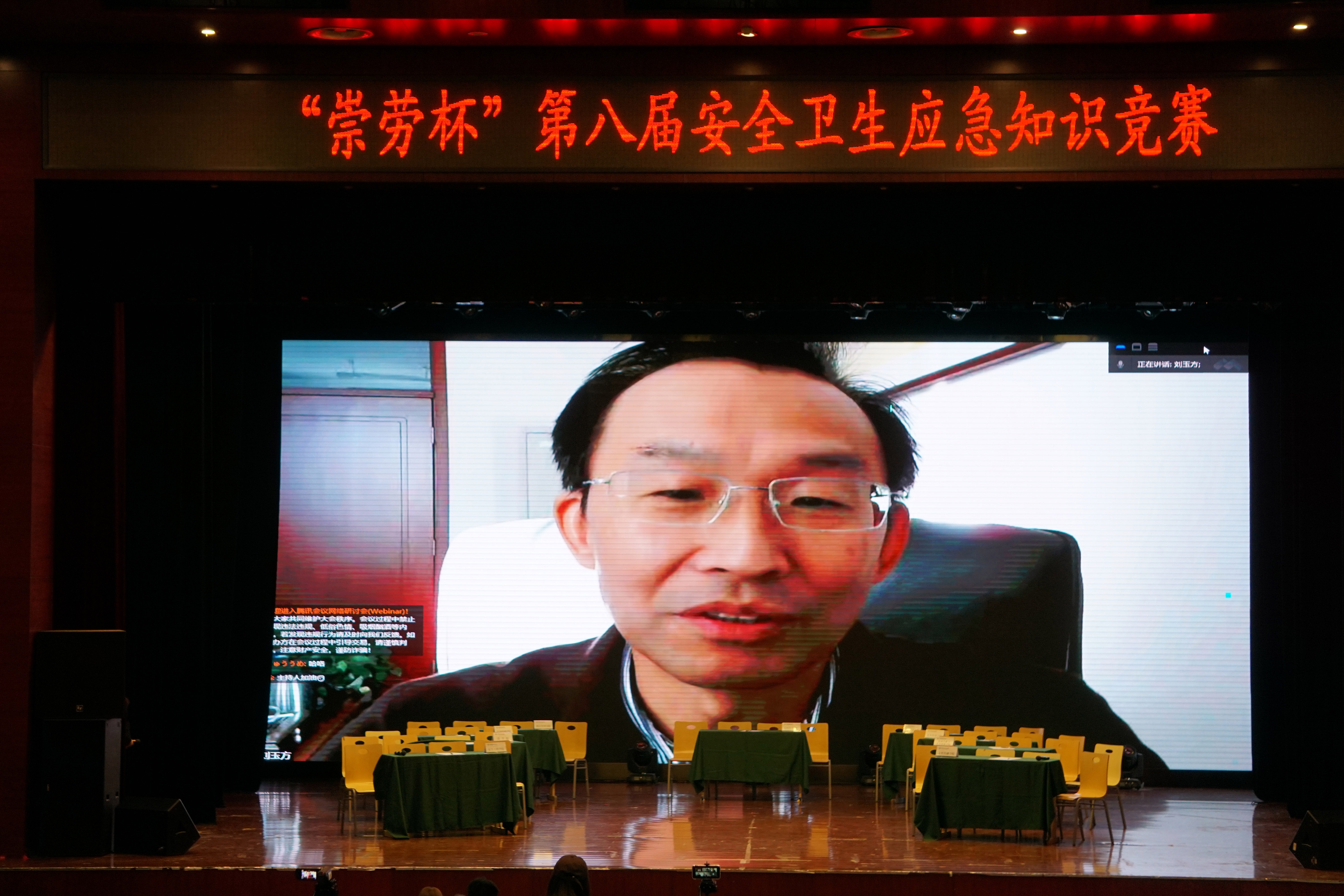 11月26日下午,“崇劳杯”第八届安全卫生应急知识竞赛以线上线下相结合的形式在我校举行。学校党委常委、副校长、全国应急技术与管理本科专业高校联盟理事会理事长刘玉方教授,教育部高等学校安全科学与工程类专业教学指导委员会秘书长、应急管理大学(筹)高等教育研究所所长徐景德教授,安全工程学院院长、全国应急技术与管理本科专业高校联盟理事会执行理事长孟燕华教授以及兄弟院校相关专业领域负责人代表以线上形式出席竞赛。安全工程学院党总支书记战帅,安全工程学院相关专业老师,以及校团委、保卫处、后勤管理处相关负责人参加线下竞赛并担任评委。