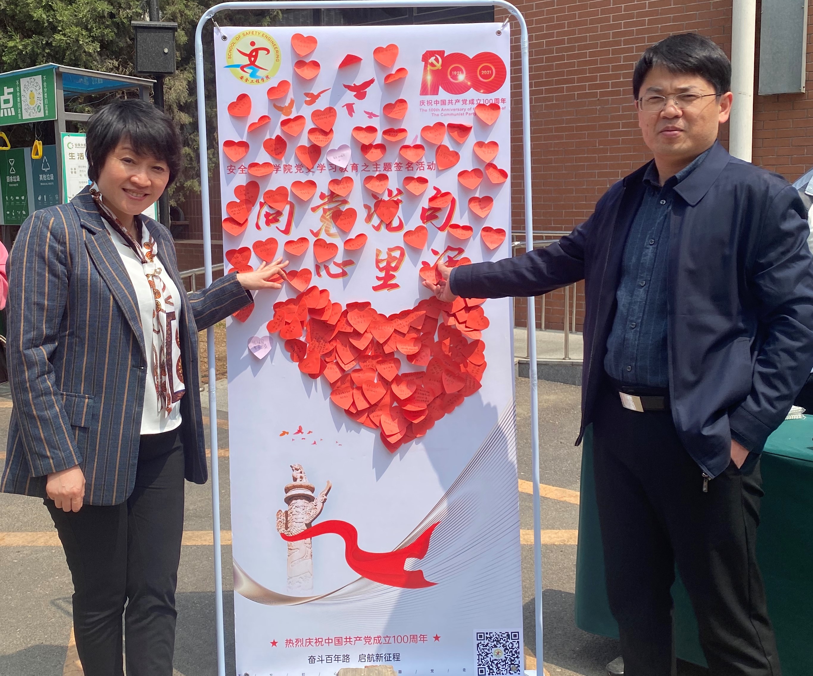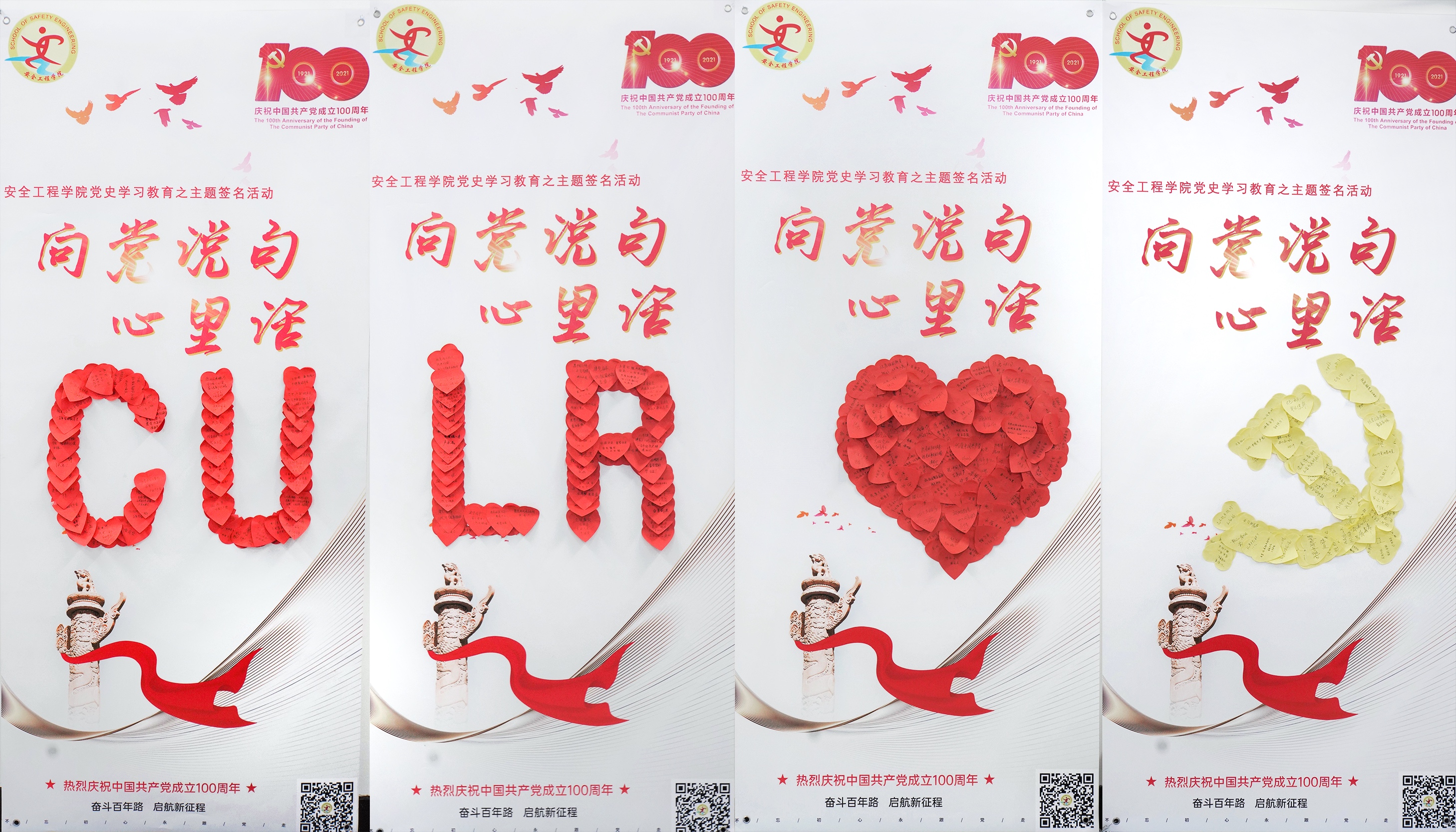 在建党100周年之际,为深入学习贯彻落实习近平总书记在党史学习教育动员大会上重要讲话精神,根据《安全工程学院党史学习教育实施方案》,4月26日、27日中午,我院在北京、涿州两校区同步开展党史学习教育之主题签名活动——“向党说句心里话”。校领导傅德印、刘玉方、刘丽红、刘路刚和党委常委燕晓飞,党政办公室、学生处、校团委、保卫处(党委保卫部)、资产管理处、后勤管理处、体育教学部等部门主要负责人,以及全校师生员工近700人参加了本次活动。大家激情满满,纷纷写下对党100年华诞最诚挚的祝福。