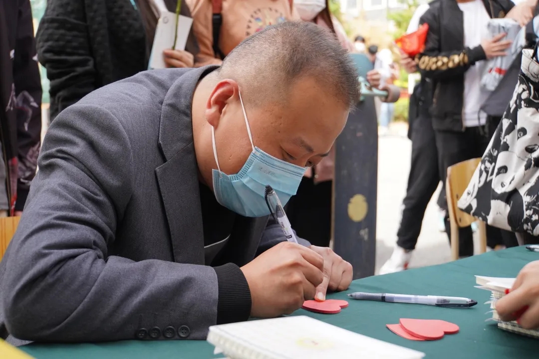 活动现场吸引了两校区众多师生员工的热情参与,有积极入党的莘莘学子,也有心心念党的普通群众,有刚刚入党的新党员,还有古稀之年的老党员,他们对党表决心、抒真情,在校内掀起了一股知党、爱党、颂党的热潮。“中国共产党带领中国人民站起来、富起来、强起来,我为中国共产党骄傲,我为自己的党员身份而自豪!”、“1921到2021,党成立百年,改变的是数字、时间,不变的是对党的初心、忠诚。”两位青年师生党员用简单的文字表达了对党的热爱之情。“党之伟业当千古,当不朽,初心不改,盛世可期!”一位退休老教师用颤抖的手写下了自己的心声。
