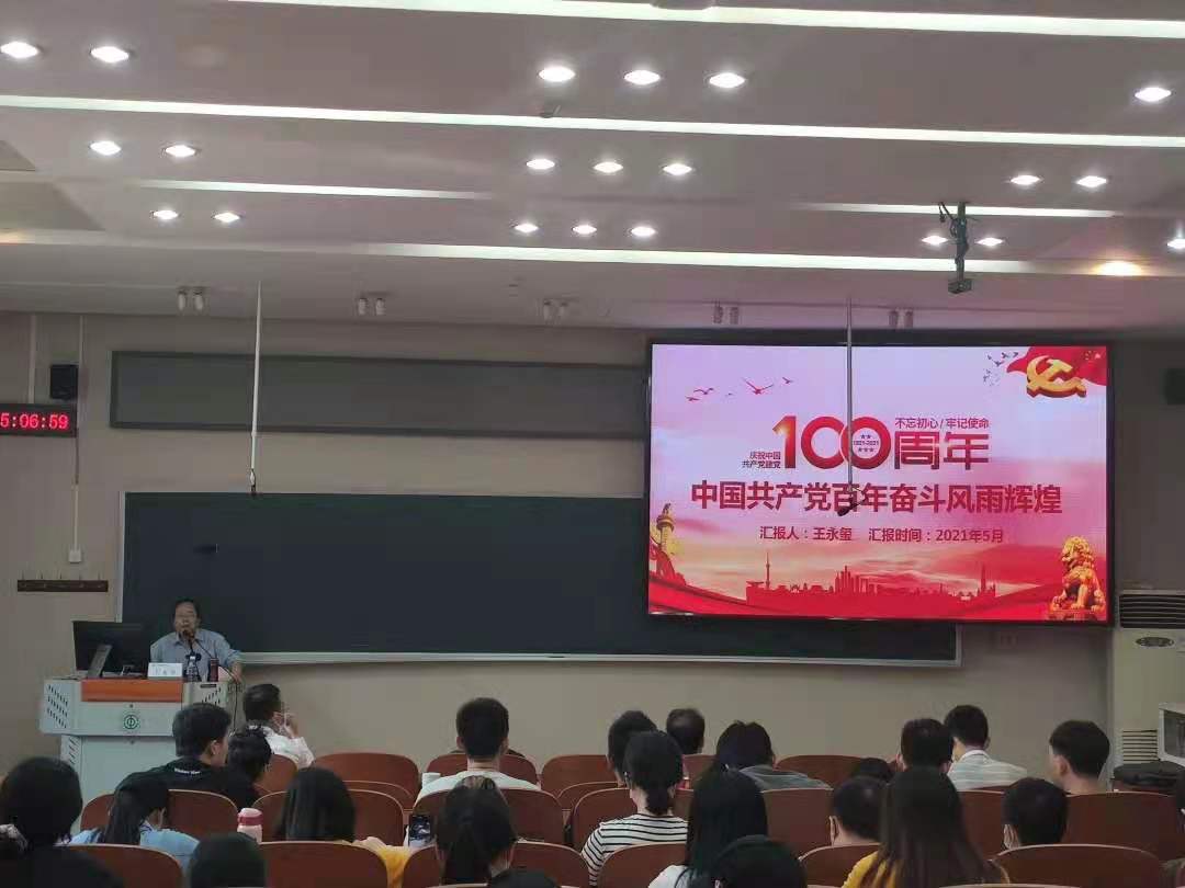 王永玺教授从伟大开端俄国路、国共携手天地阔、求索涅槃艰难甚、两大决战大风歌、天翻地覆开新宇、改革开放筑新路、百年巨变新时代等七个方面,给大家诠释了中国共产党百年奋斗的风雨辉煌。他提到,一代又一代共产党人挥洒热血、燃烧青春、奉献自我,只为坚守入党时的那颗初心。“艰难困苦,玉汝于成”。这是一切伟大事业的必然逻辑,也是无数共产党人坚守初心、诠释初心的真实写照。他勉励广大师生要爱国爱党爱民,从党史学习中激发信仰、获得启发、汲取力量。