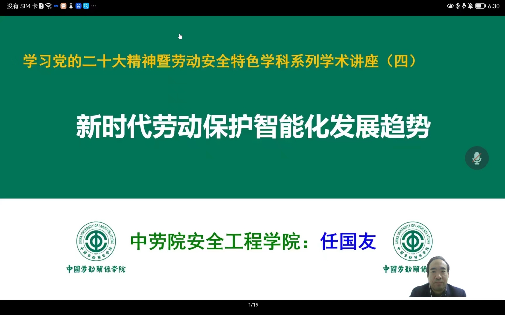 学习二十大,奋进新征程。10月28日晚,学院安全科学与工程高端系列讲座精彩开讲,科研副院长任国友在线上以《新时代劳动保护智能化发展》为题为涿州校区全体学生带来首场讲座。