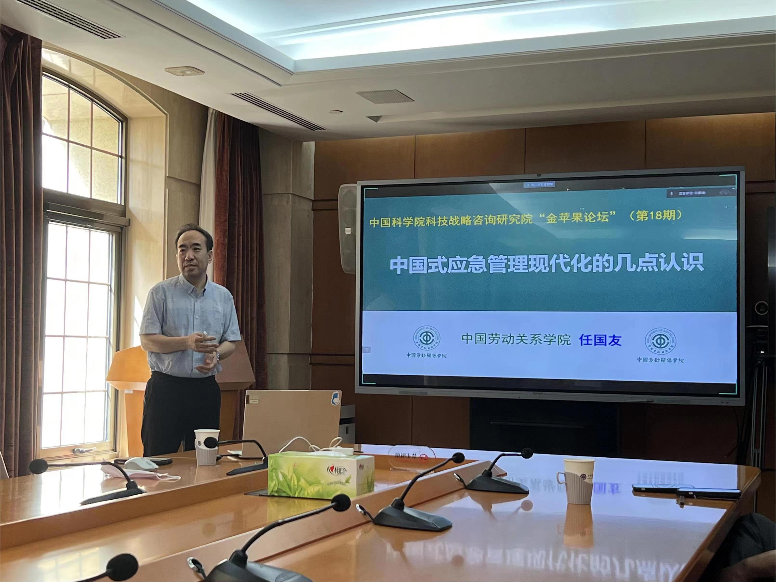 4月19日,我校安全工程学院副院长任国友教授受邀参加中国科学院科技战略咨询研究院“金苹果论坛”,来自中国科学院科技战略咨询研究院系统分析与管理研究所师生以及线上参会人员1400余参会本次论坛。