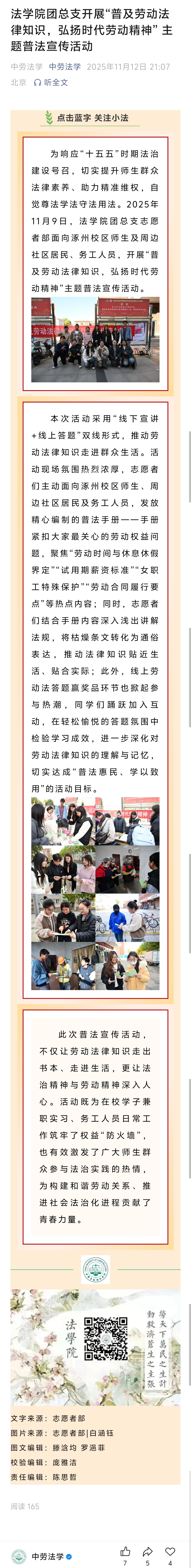 法学院团总支开展“普及劳动法律知识,弘扬时代劳动精神” 主题普法宣传活动