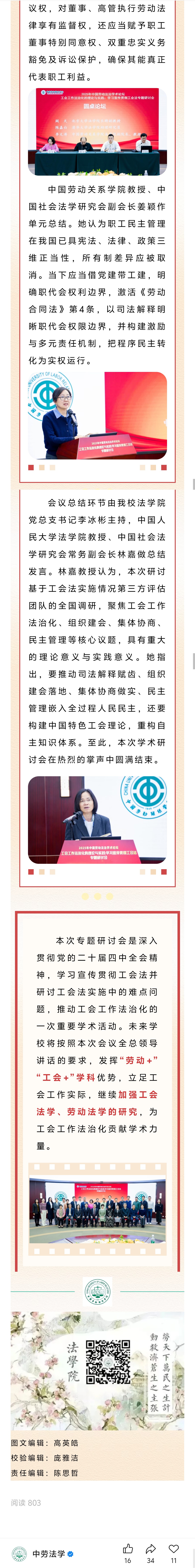我校举办2025年中国劳动法治学术论坛“工会工作法治化的理论与实践:学习宣传贯彻工会法专题研讨会”