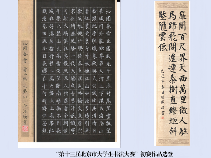 近日,第十三届北京市大学生书法大赛圆满落幕,我院2022级学生霍荟如从容执笔、沉着应战,在软笔非专业组中荣获优秀奖,展现出公管学子兼具理性素养与人文情怀的全面风采。