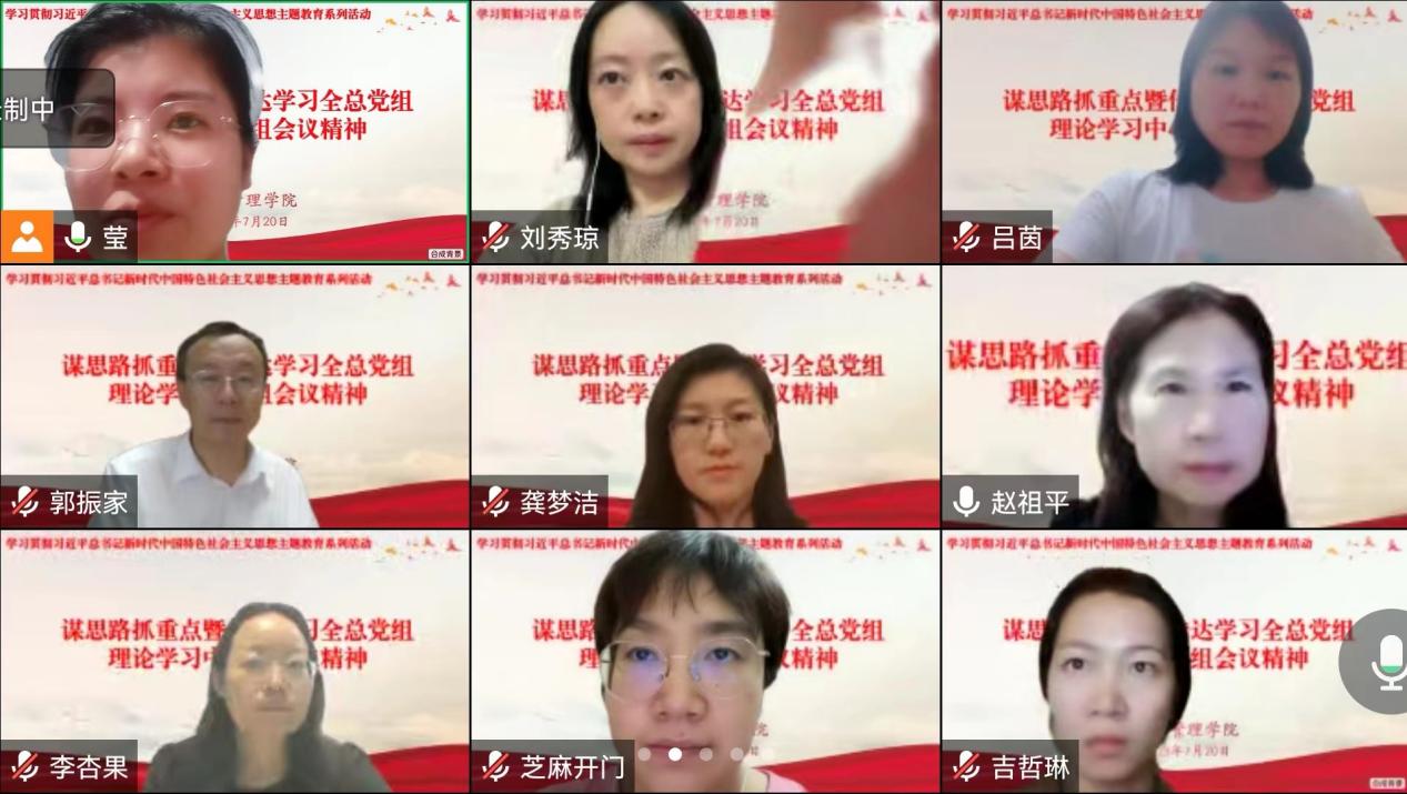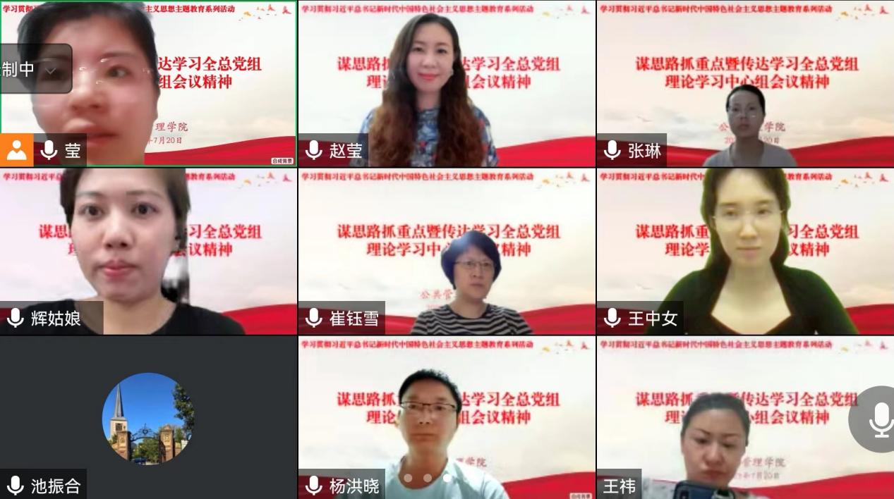 7月20日,公共管理学院在线上召开“谋思路抓重点暨传达学习全总党组理论学习中心组会议精神”专题会议。学院党总支书记兼执行院长赵祖平主持会议,学院全体教职工参会。