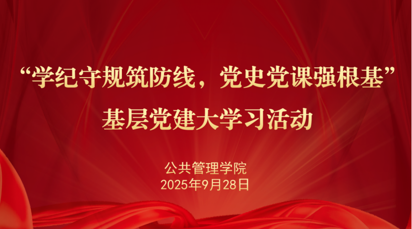 为深入贯彻落实全面从严治党要求,进一步强化党员干部纪律意识与党性修养,9月28日下午,公共管理学院党总支开展“学纪守规筑防线,党史党课强根基”基层党建大学习活动。活动由学院党总支书记赵莹主持,学院全体教工党员参加。