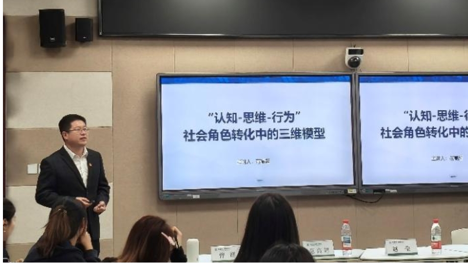 范高超校友以“认知-思维-行为:社会角色转化中的三维模型”为主题,系统阐释了从大学生到公务员转型的内在逻辑与路径。他指出,这一转化不仅是技能与知识的提升,更是在认知、思维和行为三个维度上的系统演进。他为同学们模拟了结构化面试与无领导小组讨论等实际考评场景,分享了关键能力指标,将理论转化为可感知、可训练的具体指引。