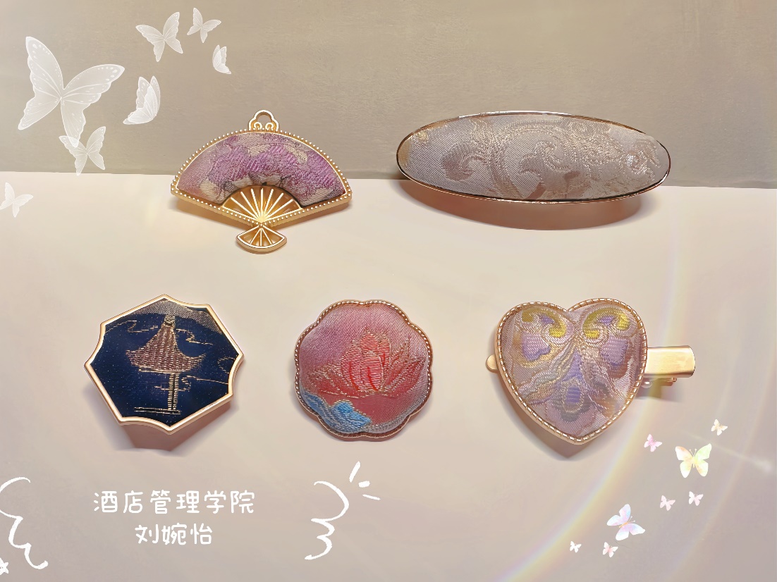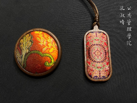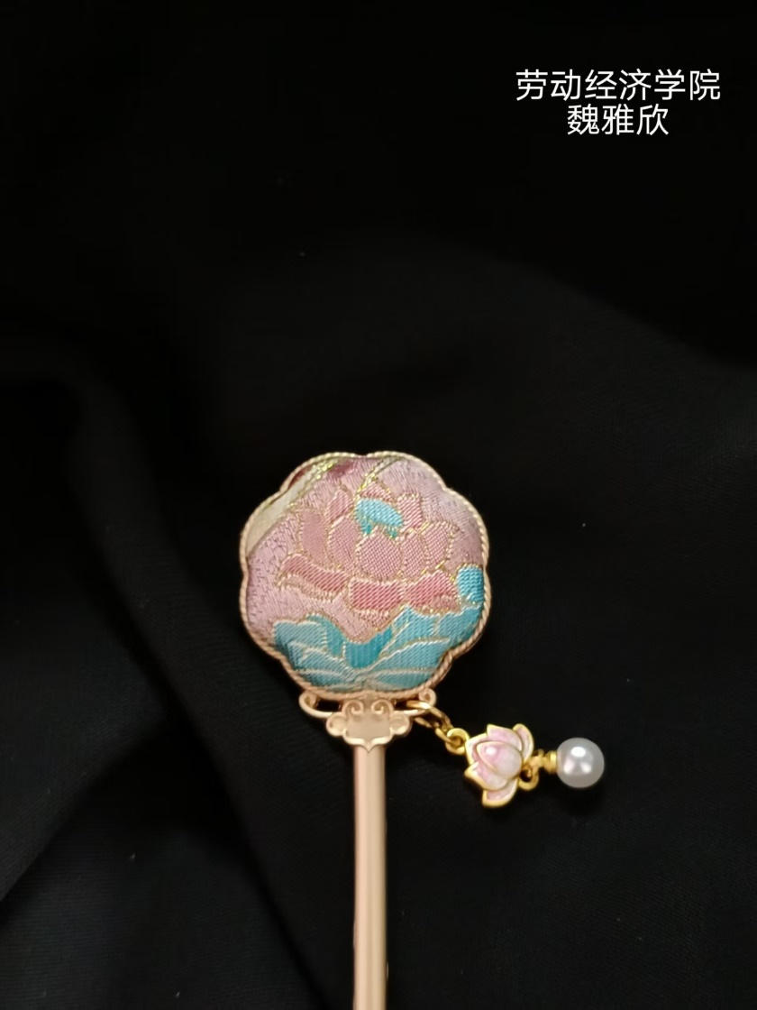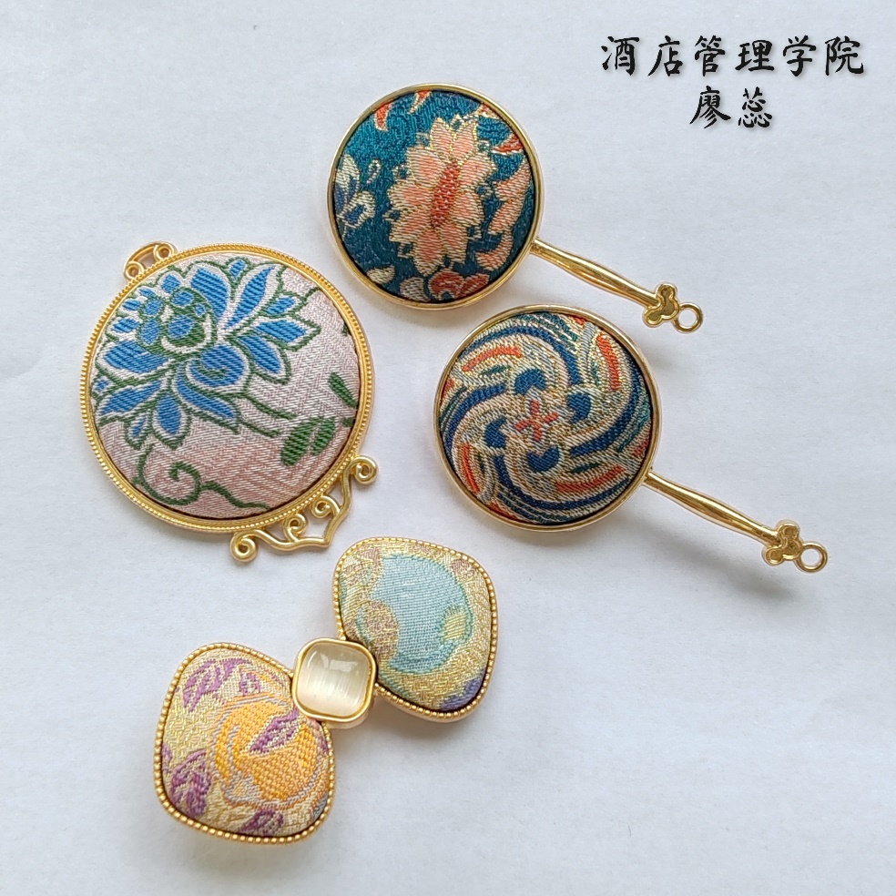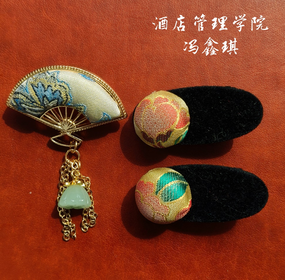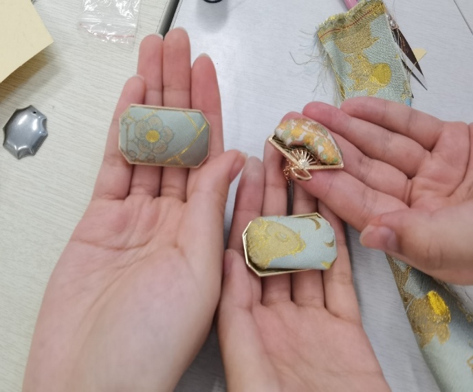 最后的“劳动初体验”环节是本次活动的高潮。同学们纷纷挑选了自己心仪的宋锦布料和金属底坯,三五成群,开始了手工制作。从画模具,到选花位,再到缝合、粘贴,互相帮助、精工细作,同学们亲手制作了自己的专属胸针、发夹、头绳、吊坠等。每一个步骤,每一个精美绝伦的小装饰品,不仅承载了传统美学,也让同学们亲身体会了劳动的价值与意义,收获了满满的幸福感和成就感。