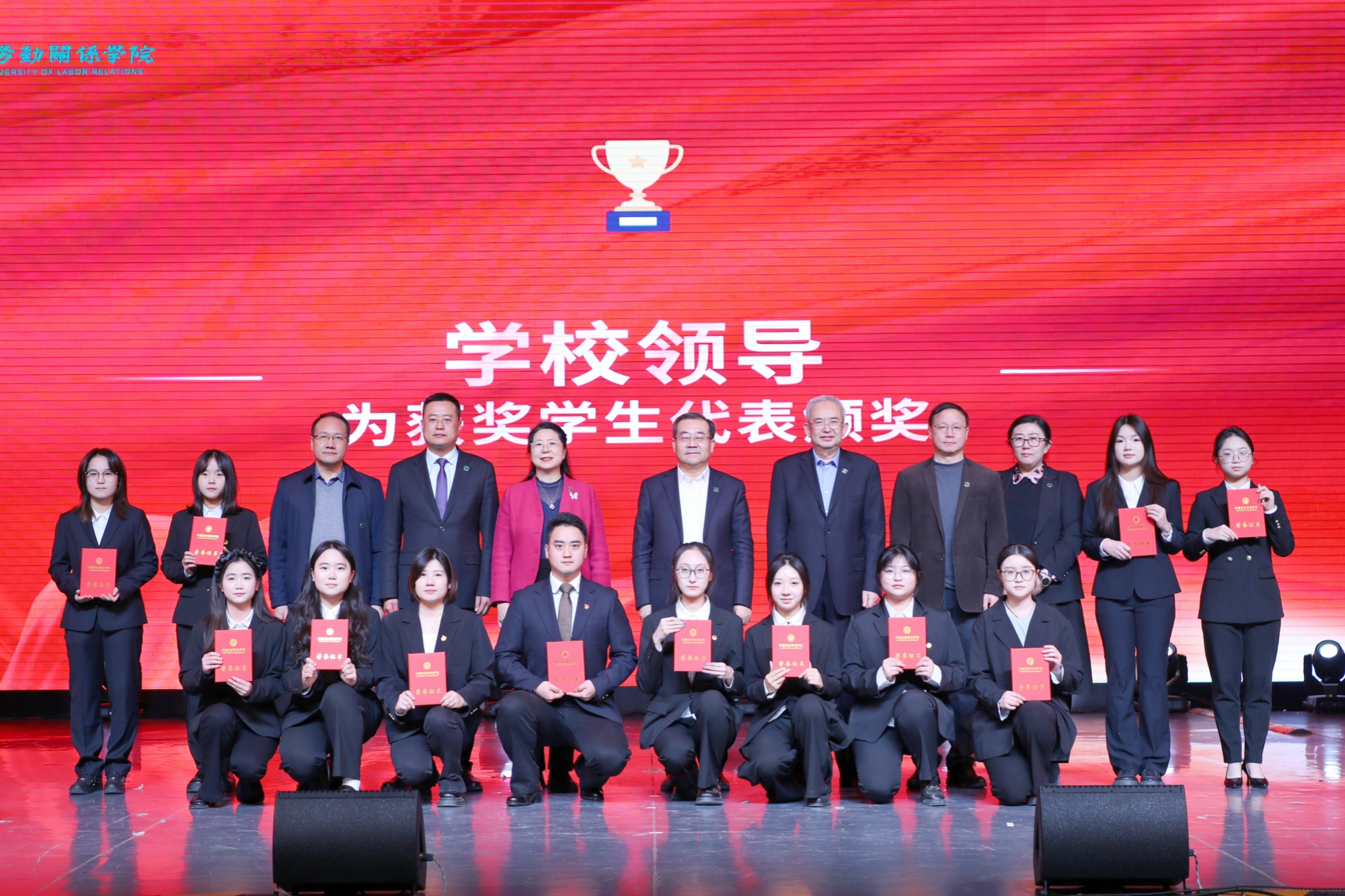 典礼上,全体校领导为获奖学生代表颁发荣誉证书。