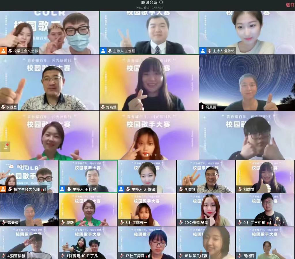 2022年5月14日下午,“青春耀百年,闪光新时代”校园歌手大赛决赛以线上的形式顺利举行。本次比赛由我校大学生艺术团匠心合唱团指导老师李登登老师、我校文化传播学院人文艺术教育中心高曼曼老师、我校工会干部戚毅老师、校团委副书记刘靖萱老师担任评委,同时设有7位大众评审。