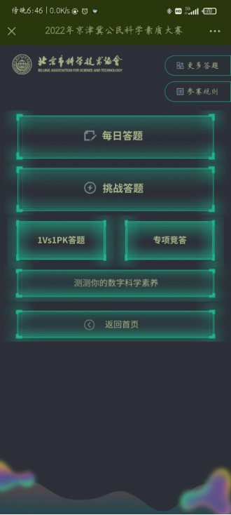 扫码关注微信公众号后点击“微科普”,找到“京津冀素质大赛”即可参与前两种答题竞赛。