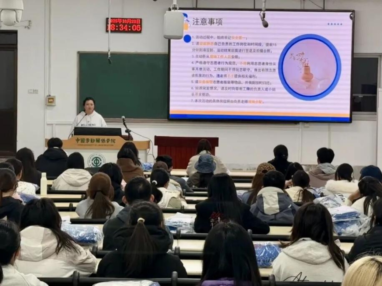 为确保志愿活动的有序开展,10月28日18:30,校青年志愿者协会为志愿者们开展了岗前培训会并分发志愿者服装。