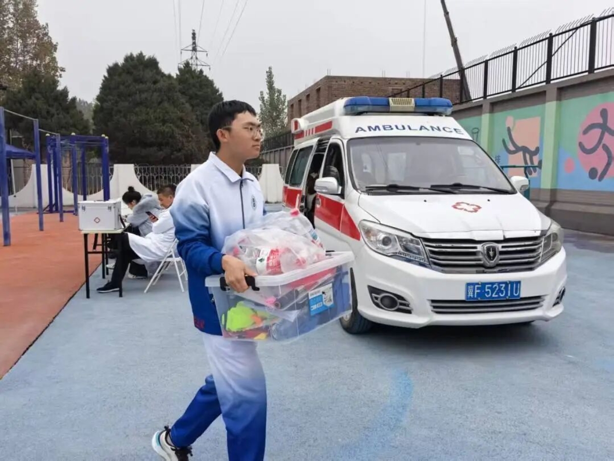 10月29日傍晚和10月31日早晨,志愿者们主动听从相关工作人员的安排,两人一组,默契合作,有序地将围栏摆放在操场周围,不一会儿,一道清晰的赛场边界便呈现在眼前,为运动员们打造了一个秩序井然、安全可靠的比赛场地。赛后,大家及时将围栏收集并完整归还,恢复了操场的原有面貌。