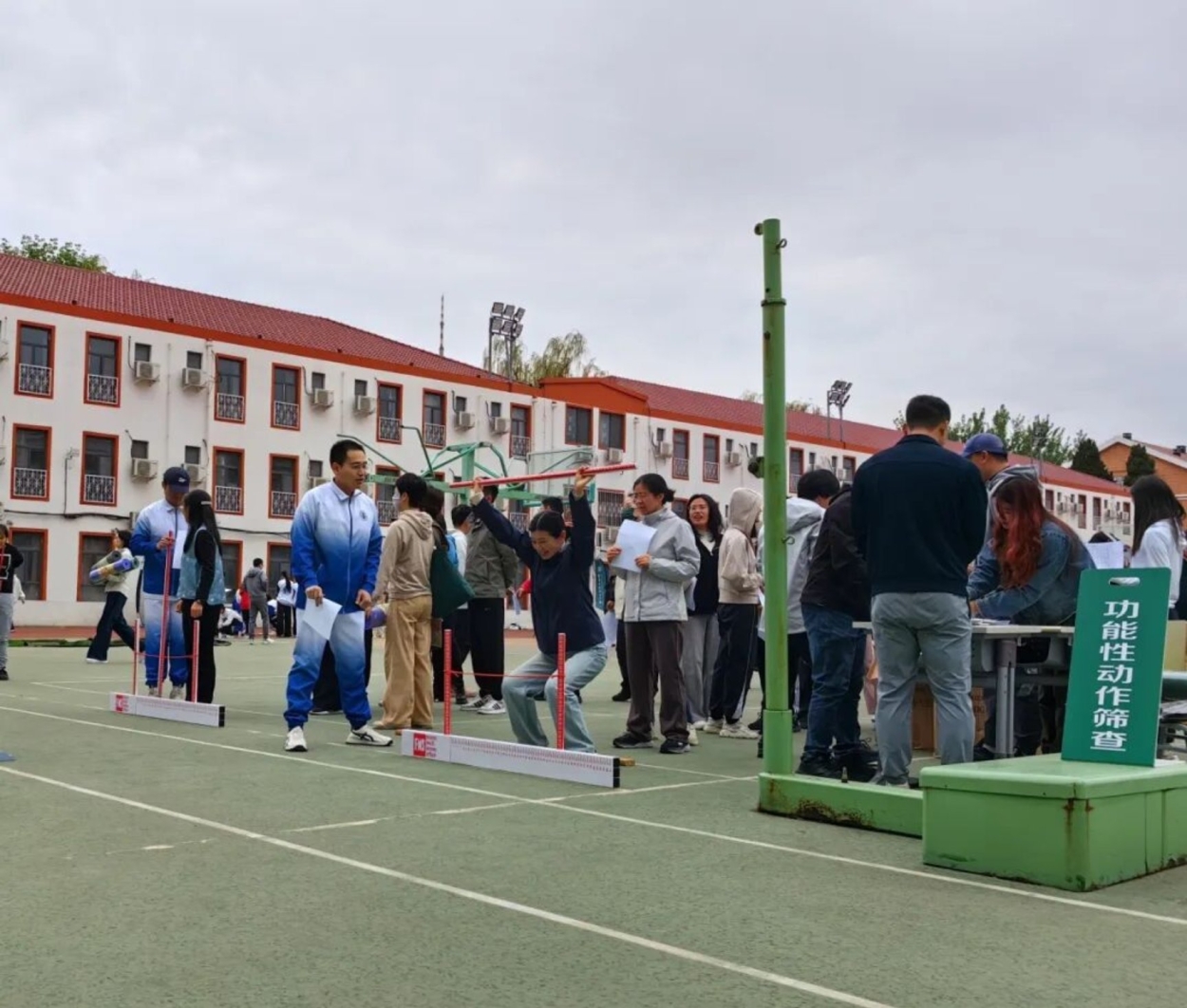 在功能性筛查现场,志愿者们全神贯注观察现场,严格监督并规范与每个动作相关的细节,保障功能性动作筛查有序进行。