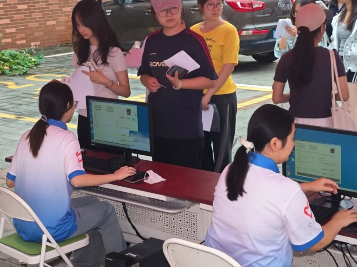 精准录入信息,是本次新生体检的重要部分。负责信息录入的志愿者接过同学们手中的校园卡,通过自动识别或手动输入,严谨细致地将新同学的数据录入校医务室系统,为后续体检工作的顺畅开展奠定了坚实基础。