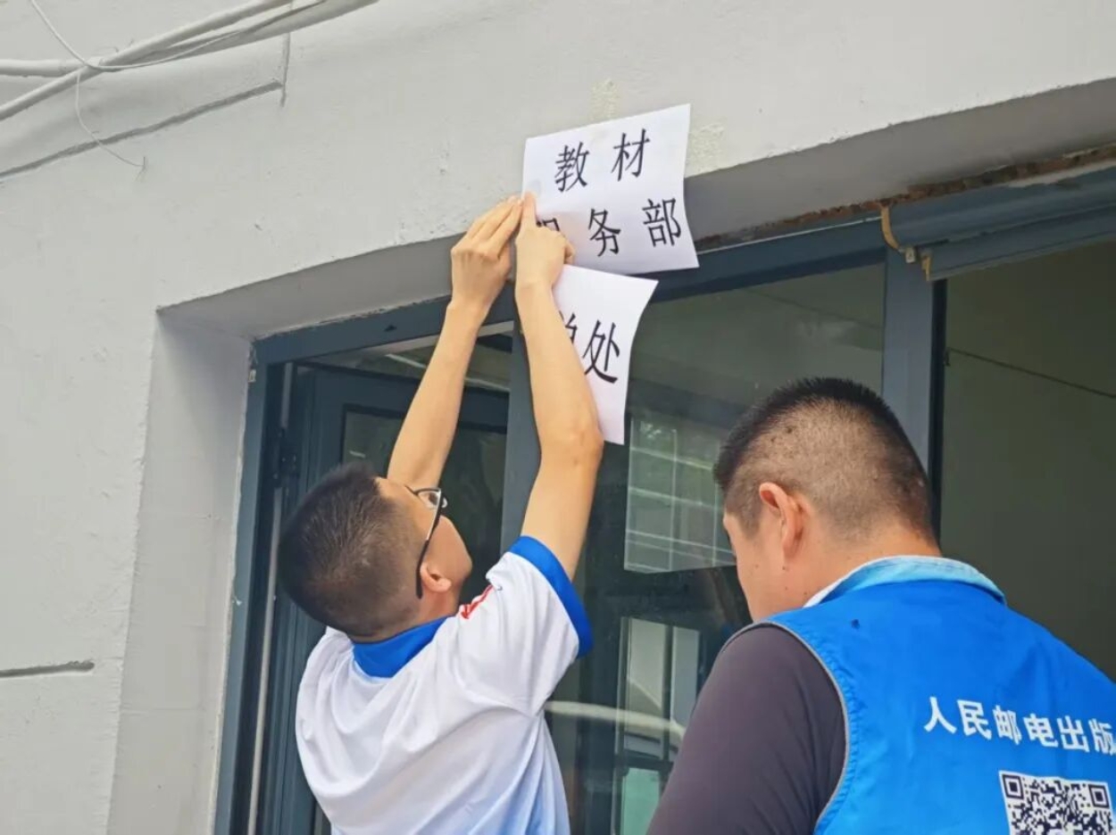 教材服务部的志愿者协助教材处的老师进行现场秩序维护的工作。他们以指引牌为标识,引导同学们有序前往“名单签收处”与“发书处”排队,并进行温馨提醒:“请仔细核对教材数量”。为保障安全,他们提示大家不要站在道路中央,确保教材分发活动顺利进行,点燃新同学新学期求知路上的第一簇星火。