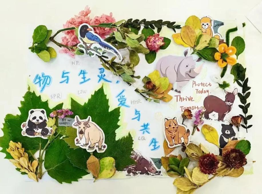 各小组充分发挥想象力,借助树叶、中草药等元素,拼凑出与主题紧密相关的内容,创作出独具特色的海报。