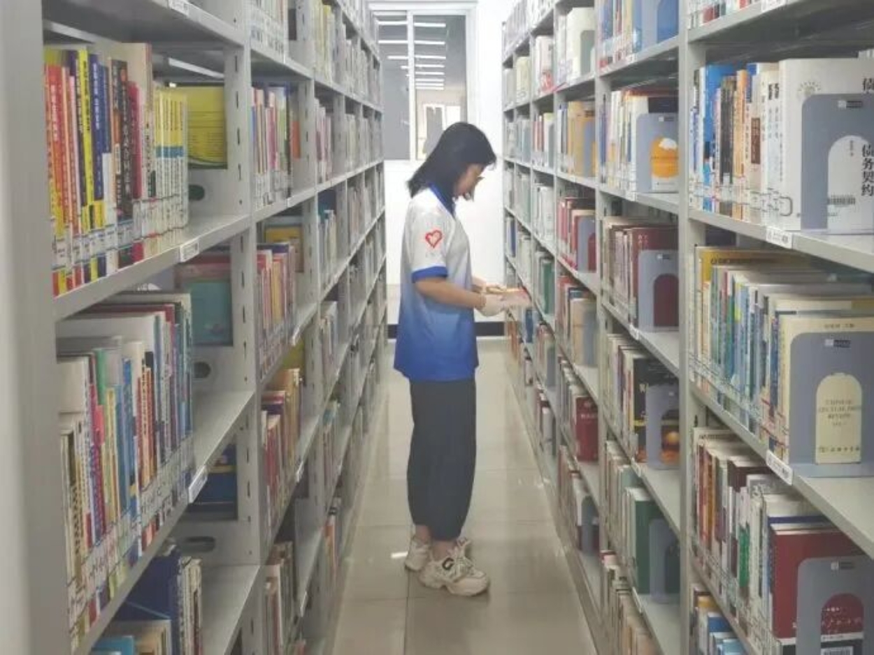 志愿者们以小组为单位有序进入各楼层阅览室。在图书馆工作人员的指导下,大家进行清洁除尘、图书归架、书架整理等服务工作。志愿者们在服务过程中保持安静,为同学们提供静谧的阅读空间。
