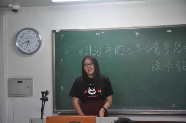 在17级新生发言之后,16级老生代表张惟一也进行了相关总结,她从习总书记身处时代出发,感悟出伟大领导人习总书记平易近人的一面。并结合实际,警示新生“耐得住寂寞,守住自己的心,不忘初心,砥砺前行”。