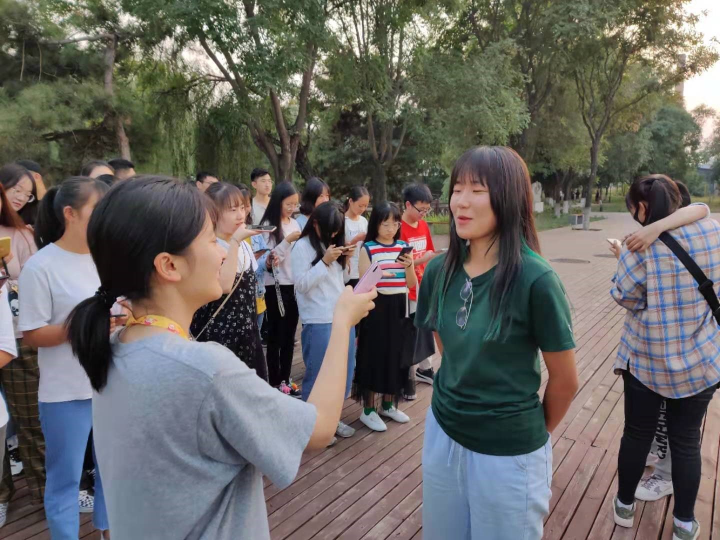 同学们首先观看了电影《建国大业》,然后相聚于中国劳动关系学院内的水上公园,共同歌唱《我和我的祖国》,抒发对祖国的热爱。