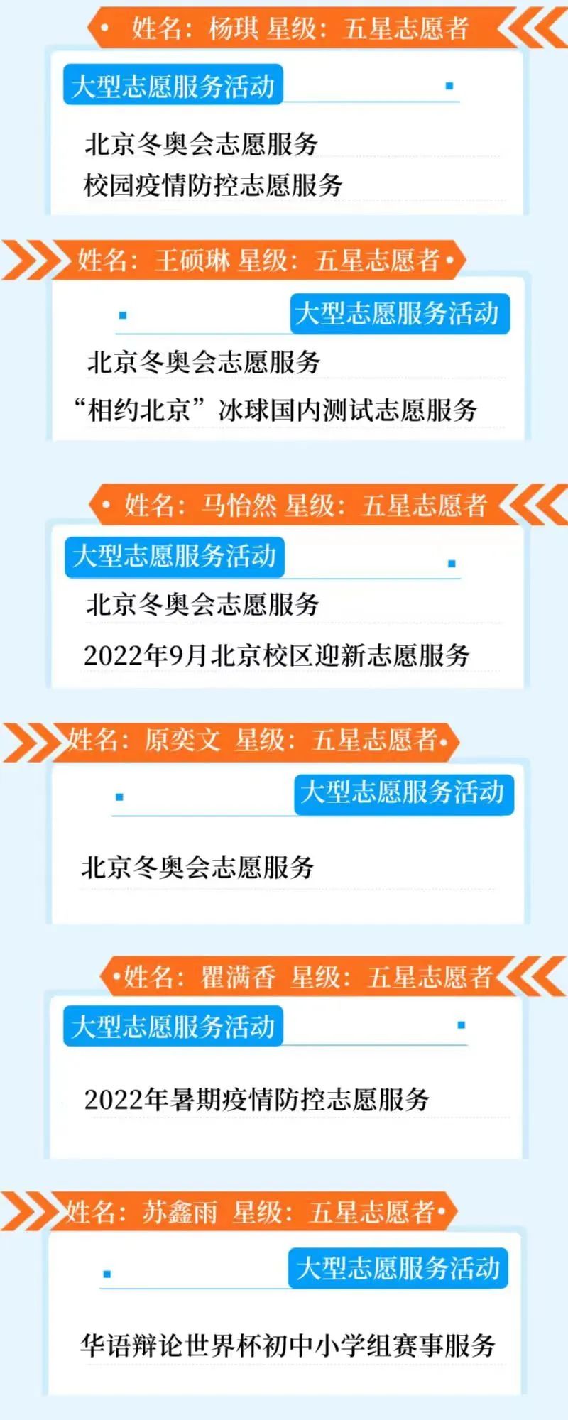星级志愿者更是如此,勇挑重担且善作善成,爱心传承奋斗情,“星”光照亮志愿路!