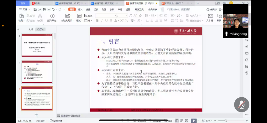 6月19日19:00,我院在腾讯会议开展了“疫情下我国的就业形势与就业模式变化”的学术讲座,本次讲座由中国人民大学劳动人事学院教授易定红教授主讲。讲座由我院执行院长谢琦教授主持,院长纪韶教授进行会议总结。我院劳经系主任张勇、财管系主任刘东生、王李、祝映兰、王珊娜、孙晓阳、王蓉、谭超、英奕楠、苏逸男、王超萃、王建宁、李瑞茜、冯婧、汤学敏等我院教师与学生参加了此次会议并进行深入交流。