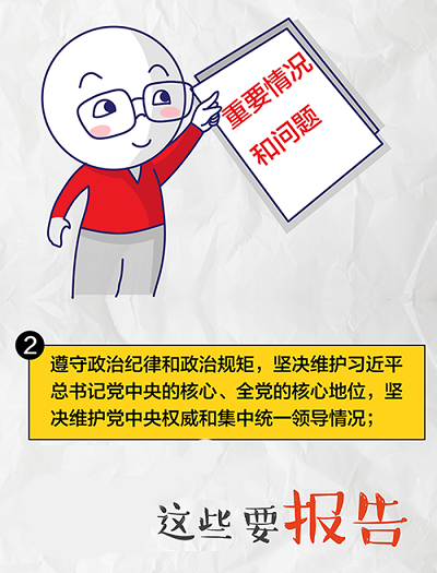 请示报告制度是我们党的一项重要政治纪律、组织纪律、工作纪律,是执行民主集中制的有效工作机制。近日,中共中央印发了《中国共产党重大事项请示报告条例》。根据规定,领导干部应当向党组织请示、报告下列事项: