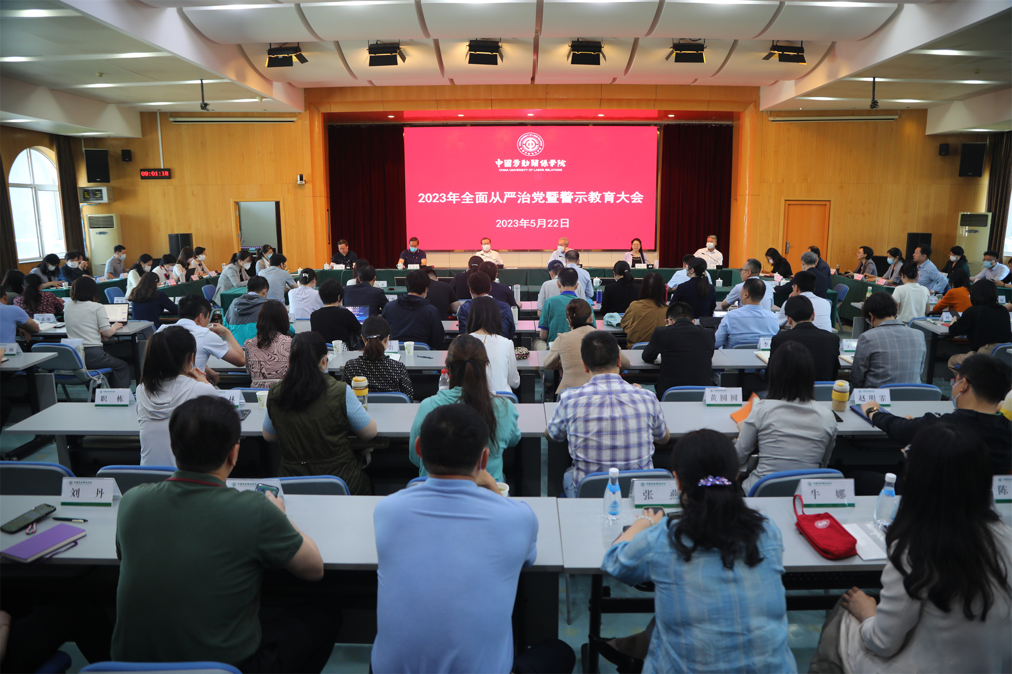 5月22日上午,学校在北京校区闻道楼508教室召开2023年全面从严治党暨警示教育大会。全总机关主题教育指导一组副组长、全总社会联络部二级巡视员张丙亮,全总机关主题教育指导一组成员、全总机关离退休干部局党委办公室副主任王春然,全体校领导出席会议。全校在聘在岗副处级以上干部,各党总支、党支部(副)书记,相关部门副科级以上干部140余人参加会议。会议由校长傅德印主持。