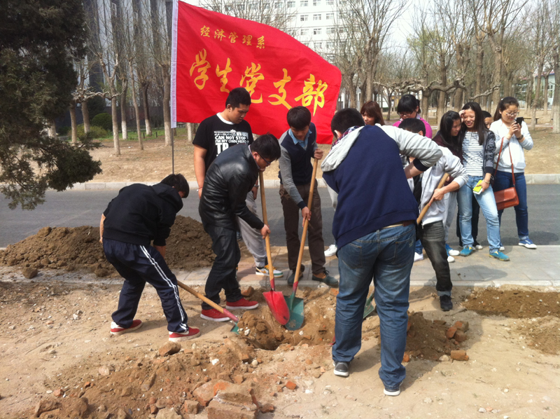 2014年3月28日下午和31日上午,我系涿州校区学生党支部组织各班同学在图书馆门前空地举办植树活动。此次活动是“弘扬雷锋精神争做时代全人”系列活动之一,同时也是响应总务处“拥抱春天播种绿色”义务植树活动的倡议。引导我系同学积极参与实践活动,落实科学发展观人与自然和谐发展,美化、绿化、保护校园环境,建设生态校园,争做绿色文明的使者,为打造绿色低碳的校园环境奉献一份力量。