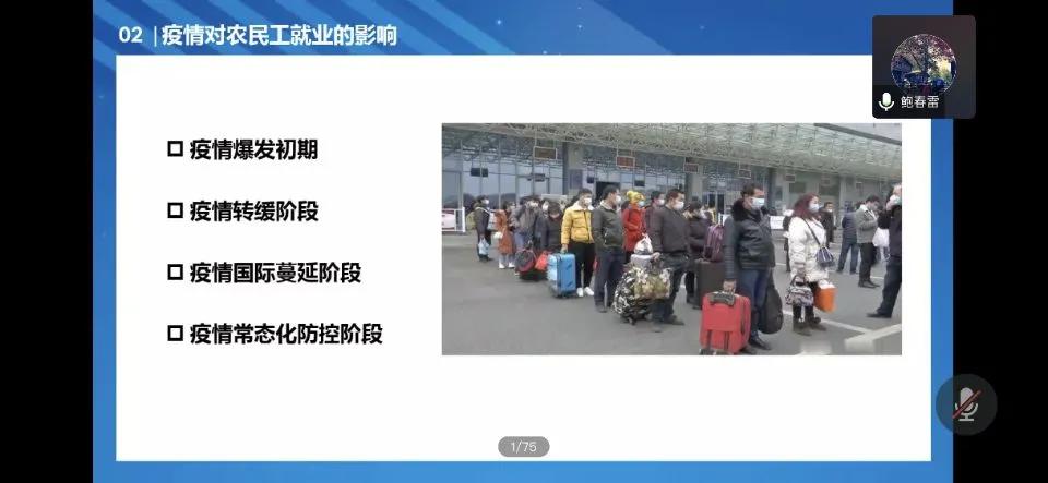鲍春雷副研究员对疫情下农民工复工就业状况进行简单预测,深入总结推动复工复产的经验做法,坚持就业优先,同时国家应该通过更积极的就业政策稳住农民工就业基本盘,为农民工创造一个就业的良好社会环境。