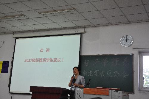 9月6日下午14点,系部在阶三教室召开了2017级新生家长见面会,李淑玲书记主持会议。李书记在会上向各位家长介绍了经济管理系的培养方案、教育理念及未来的就业方向,在表达对经管系学生的殷切希望的同时也代表经济管理系全体教职工向各位家长支持系部工作表示感谢。
