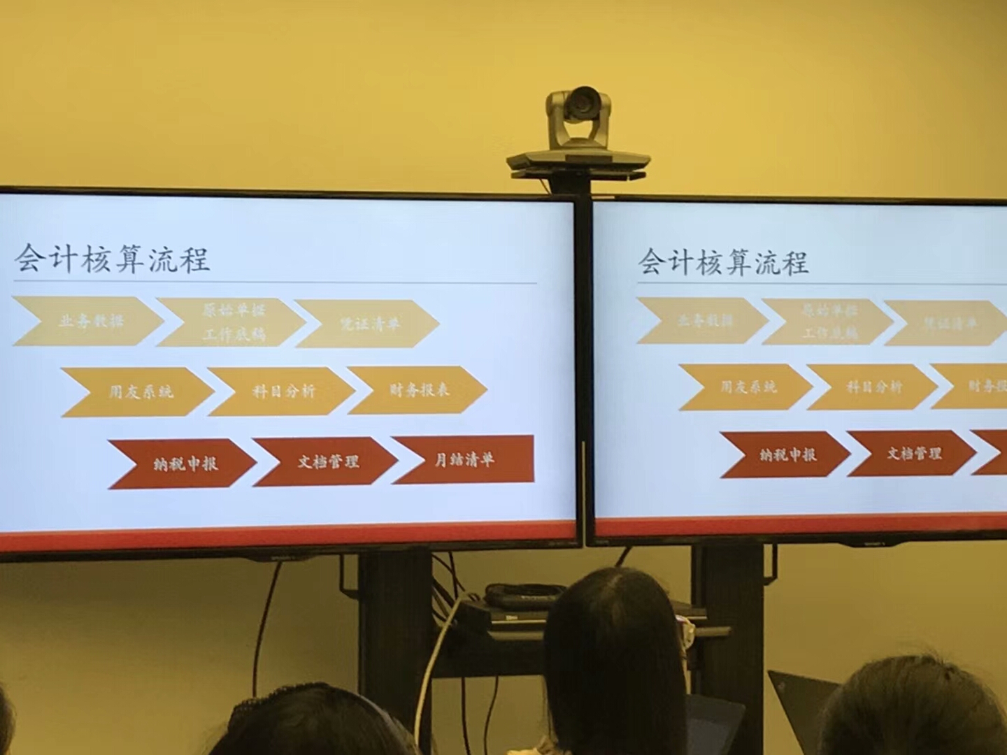 首先,程颖老师简单介绍了一下企业会计核算的流程。从初始的业务数据到终止的月结清单,带着我们简单的了解了企业财务活动的几大组成部分。随后,来自北京大学光华管理学院15级的黄婕学姐带领我们熟悉了小规模纳税企业在处理会计账务时涉及到的会计科目与科目。课本上学习的会计学原理不尽相同,但是企业的会计处理非常灵活,再加之会计电算化的逐渐升级和进步让会计处理更加高效且容易上手。程颖老师和黄婕学姐深入浅出的讲解让我们初步接触了企业会计核算的轮廓。