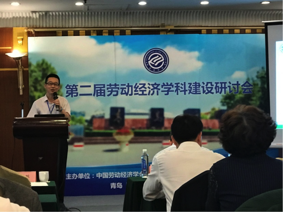 5月25日到26日,由劳动经济学会主办、青岛大学劳动人事研究院承办的“第二届劳动经济学科建设研讨会”在山东省青岛市山孚大酒店举行。劳动经济学会会长、中国社科院人口与劳动经济研究所所长张车伟,劳动经济学会副会长、中国人民大学劳动人事学院院长杨伟国,劳动经济学会副会长、北京师范大学经济与工商管理学院院长赖德胜,劳动经济学会常务理事、首都经济贸易大学劳动经济学院院长冯喜良等专家学者出席会议。我系谢琦、张勇、冯婧三位老师参加了会议,经济学教研室主任张勇老师做了大会主题发言。